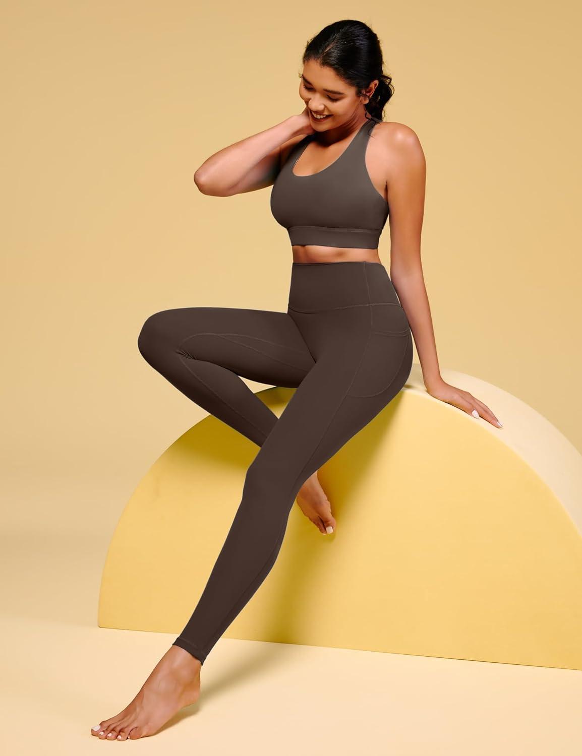 IUGA Leggings with Pockets for Women High Waisted Yoga Pants Women Tummy Control Workout Compression Running Leggings(Brown)