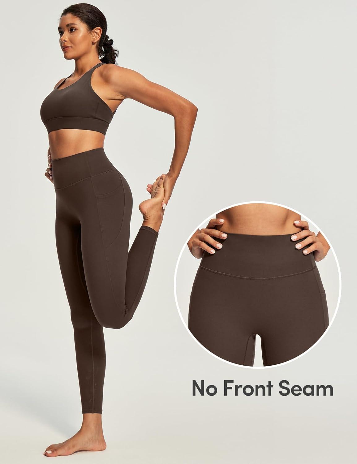 IUGA Invisible Scrunch Butt Lifting Leggings for Women No Front Seam Gym Leggings with Pockets Yoga Pants Tummy Control(Brown)