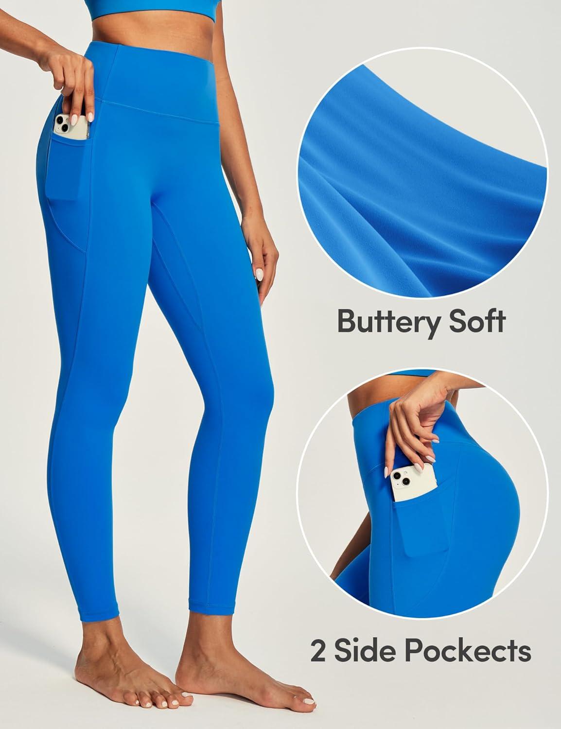 IUGA Leggings with Pockets for Women High Waisted Yoga Pants Women Tummy Control Workout Compression Running Leggings(Matte Blue)