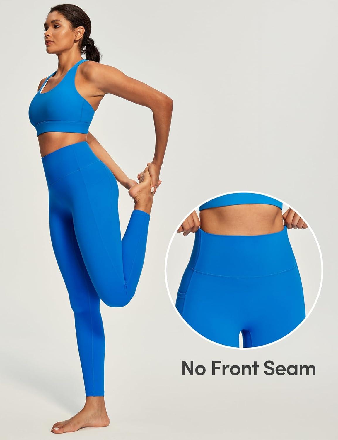 IUGA Invisible Scrunch Butt Lifting Leggings for Women No Front Seam Gym Leggings with Pockets Yoga Pants Tummy Control(Cobalt Blue)