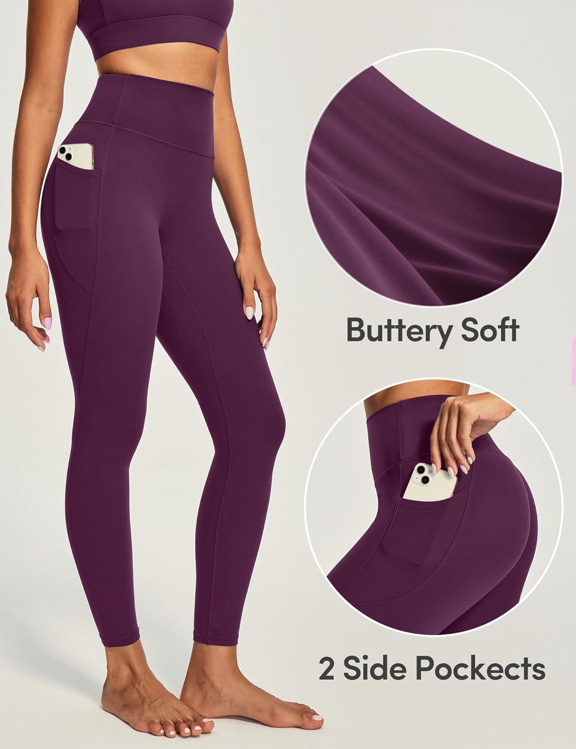IUGA Leggings with Pockets for Women High Waisted Yoga Pants Women Tummy Control Workout Compression Running Leggings(Matte Maroon)