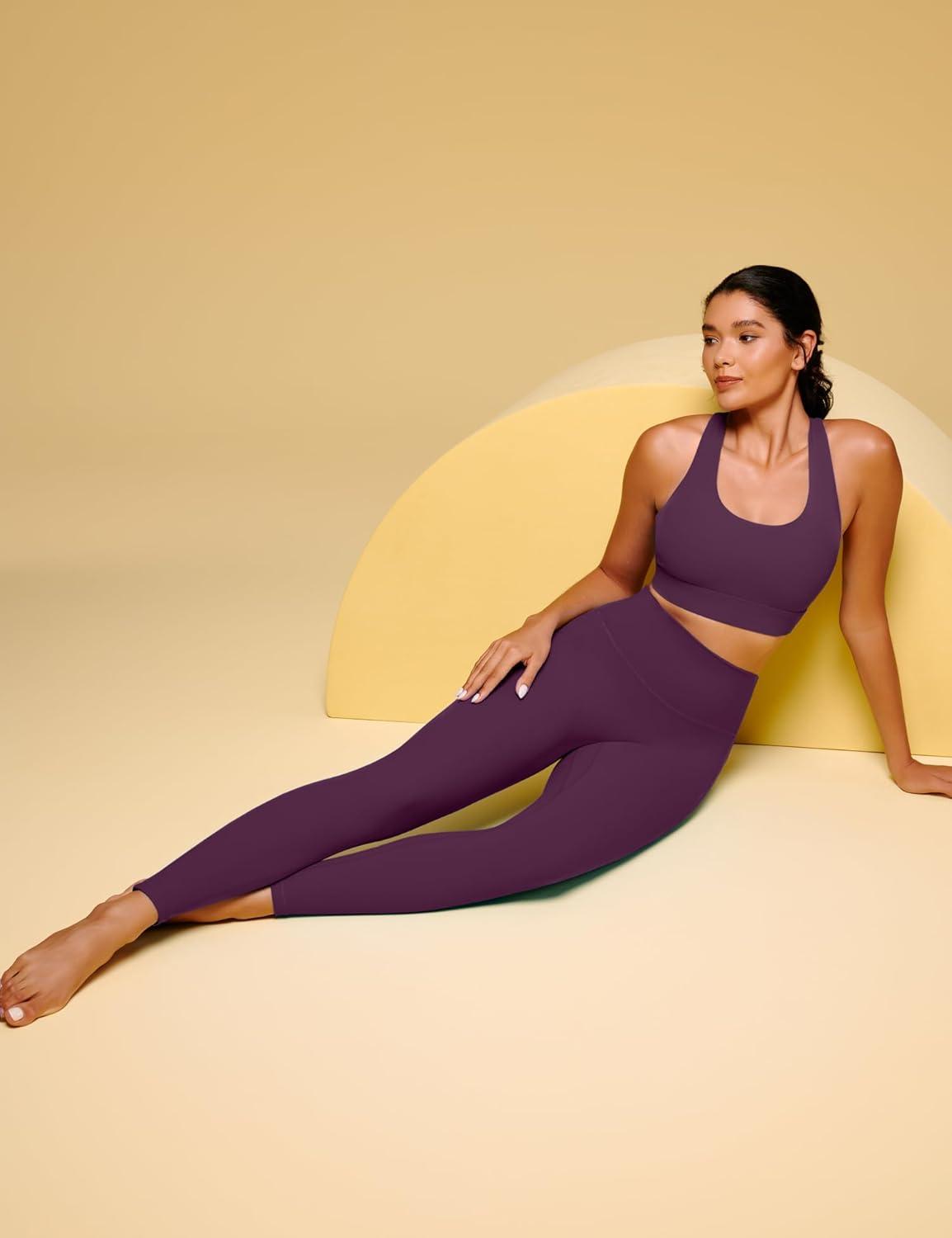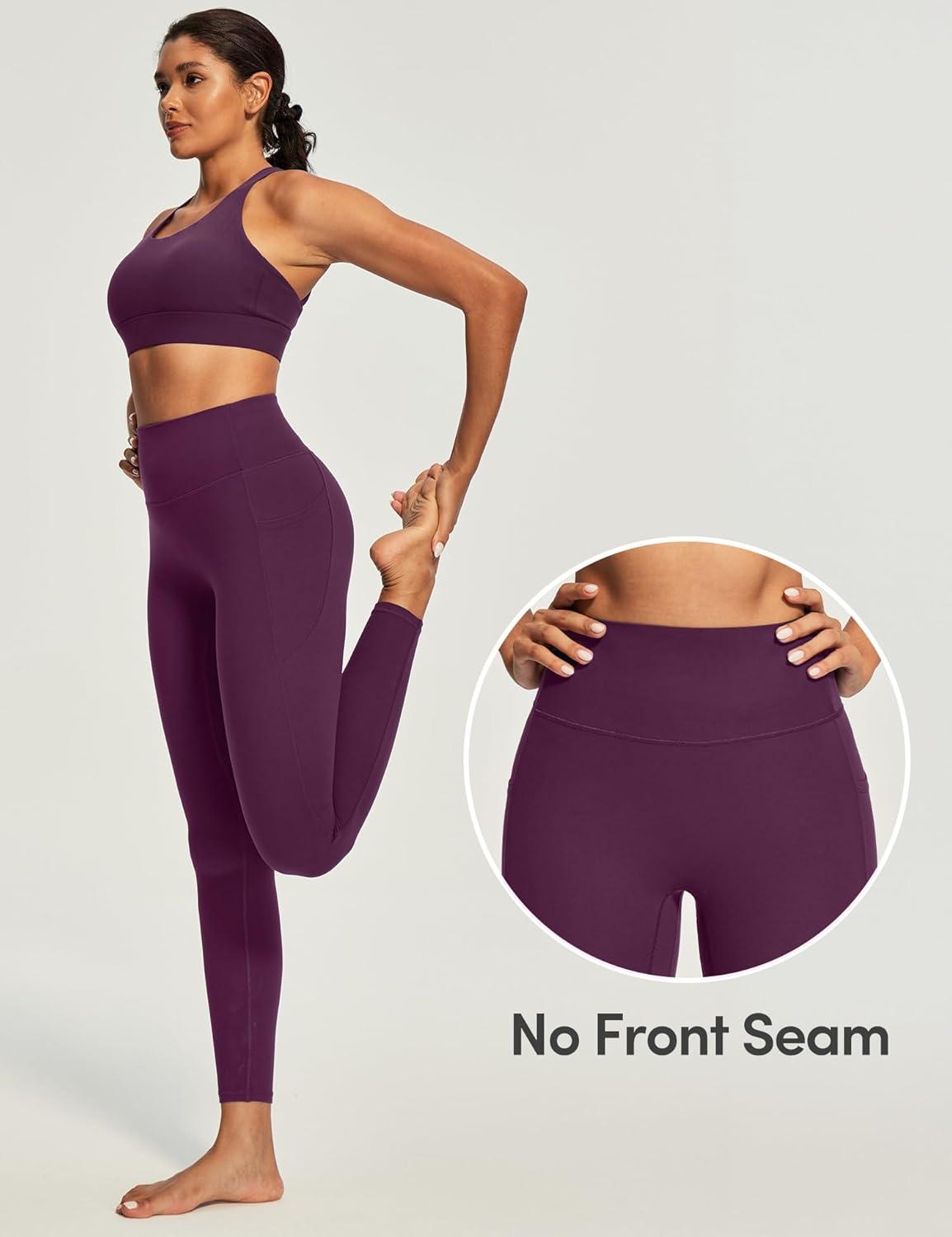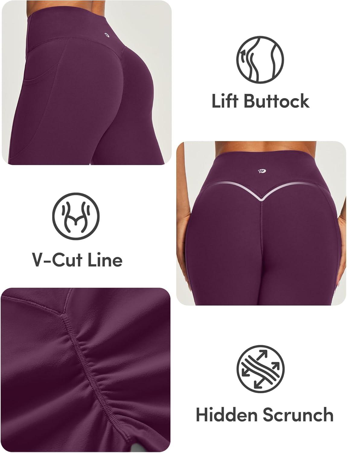 IUGA Invisible Scrunch Butt Lifting Leggings for Women No Front Seam Gym Leggings with Pockets Yoga Pants Tummy Control(Dark Volet)