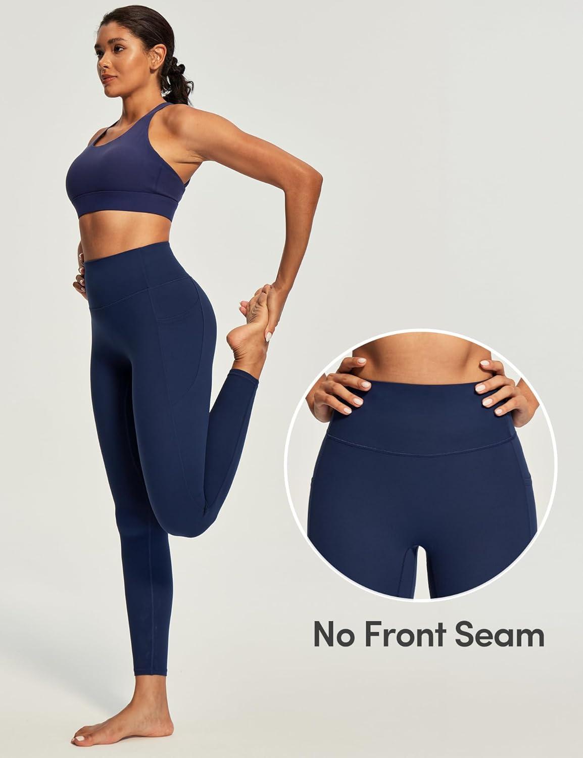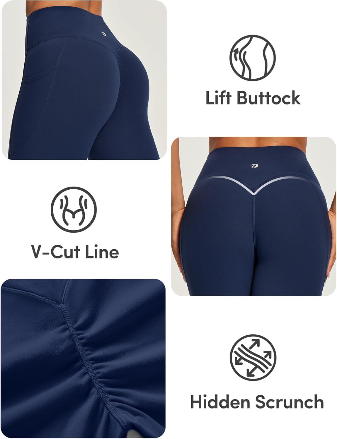 IUGA Invisible Scrunch Butt Lifting Leggings for Women No Front Seam Gym Leggings with Pockets Yoga Pants Tummy Control(Navy Blue)