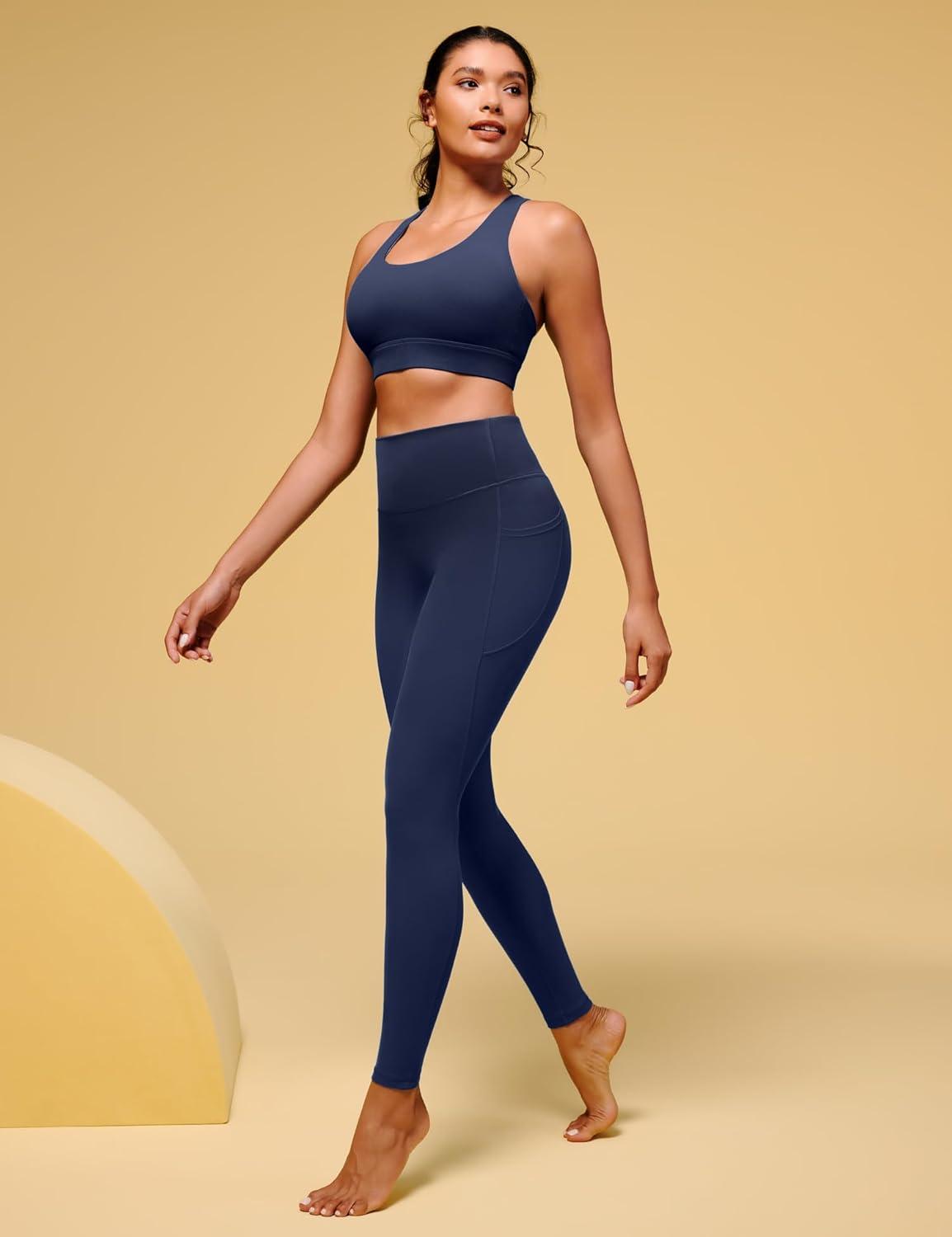 IUGA Leggings with Pockets for Women High Waisted Yoga Pants Women Tummy Control Workout Compression Running Leggings(Navy Blue)