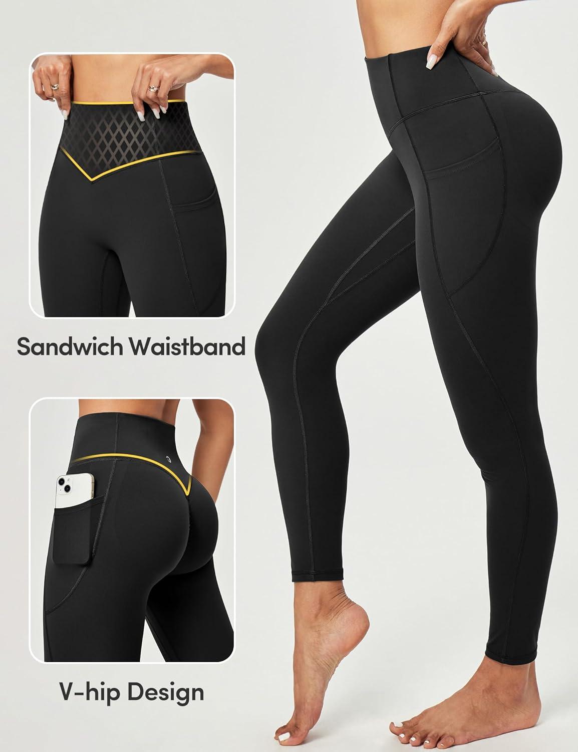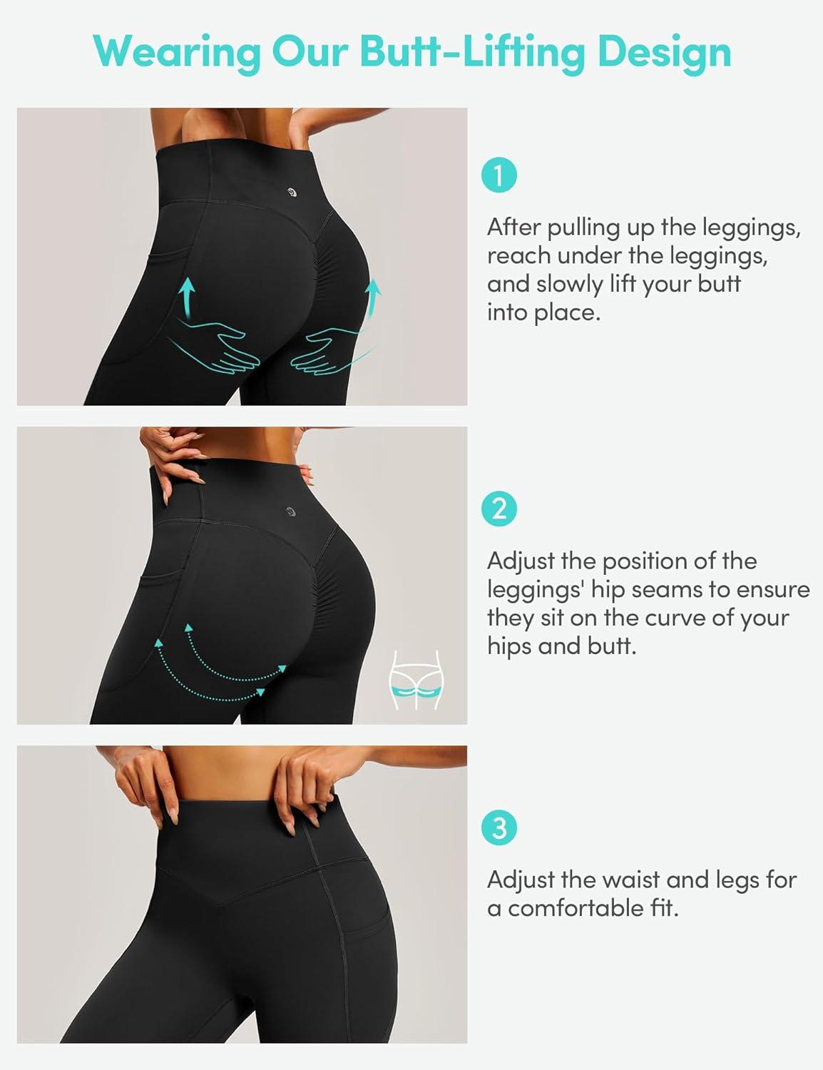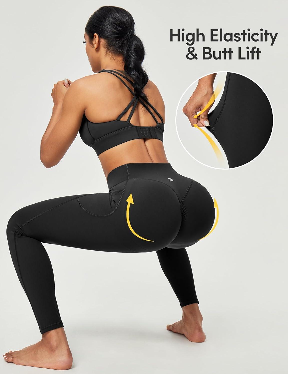 Scrunch Butt Lifting Leggings for Women Tummy Control No Front Seam Compression Workout Leggings with Pockets Yoga Pants(Black)