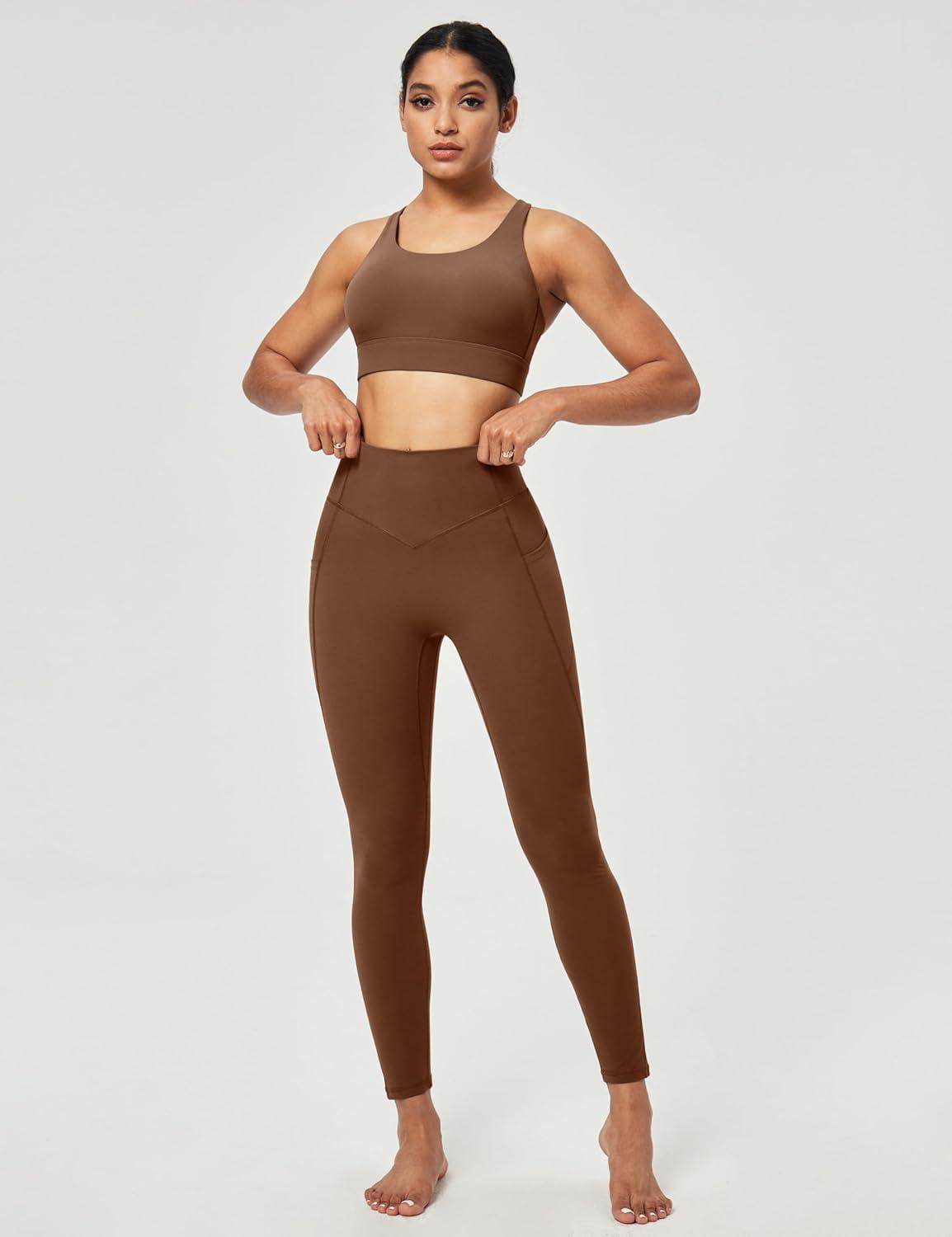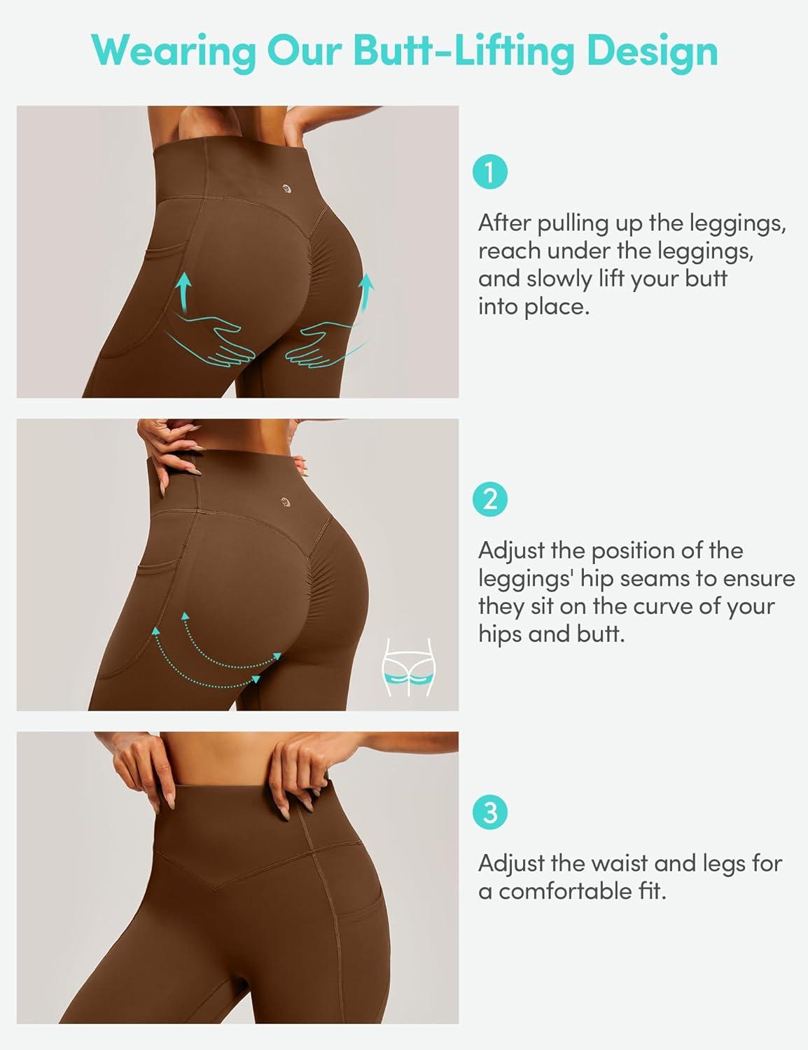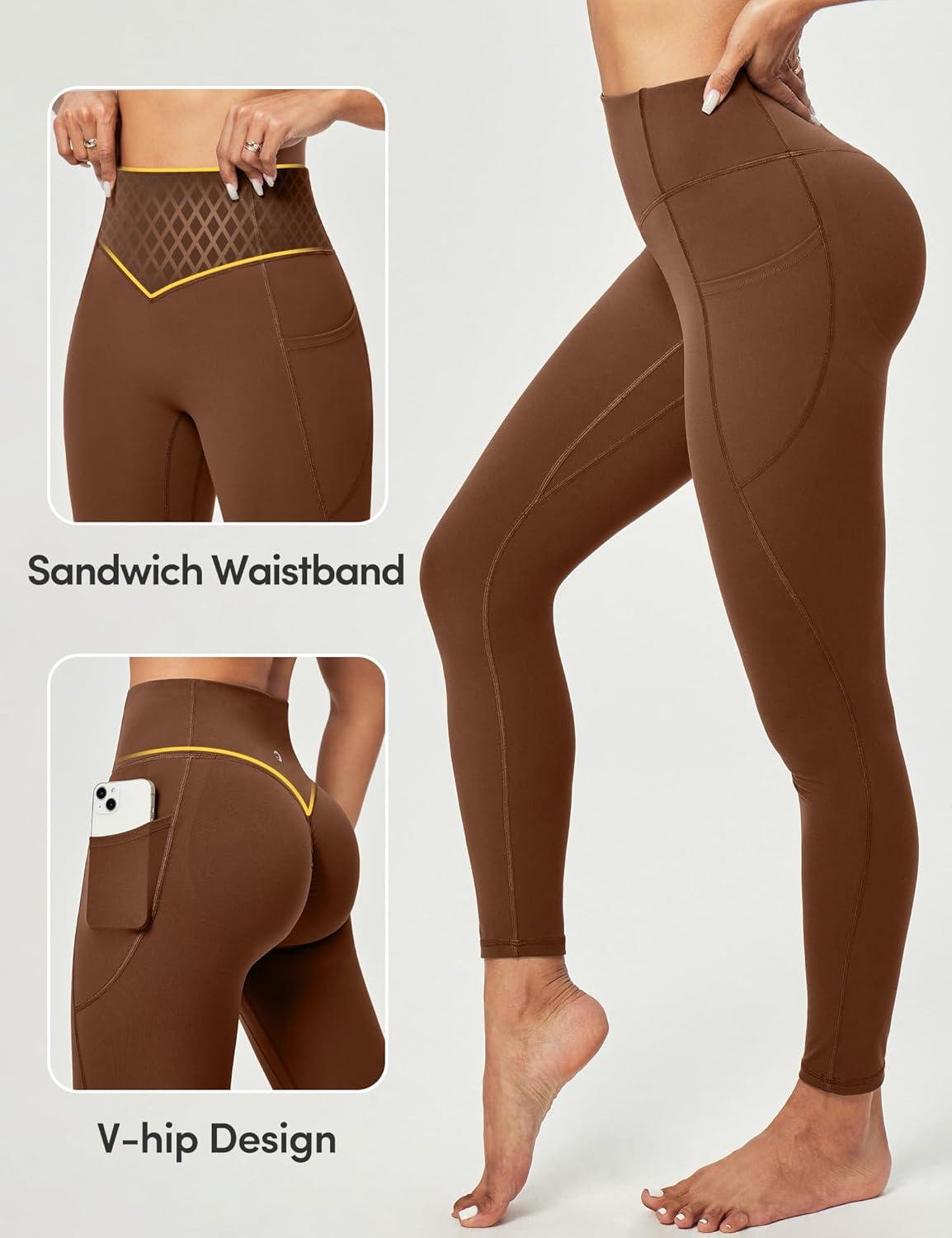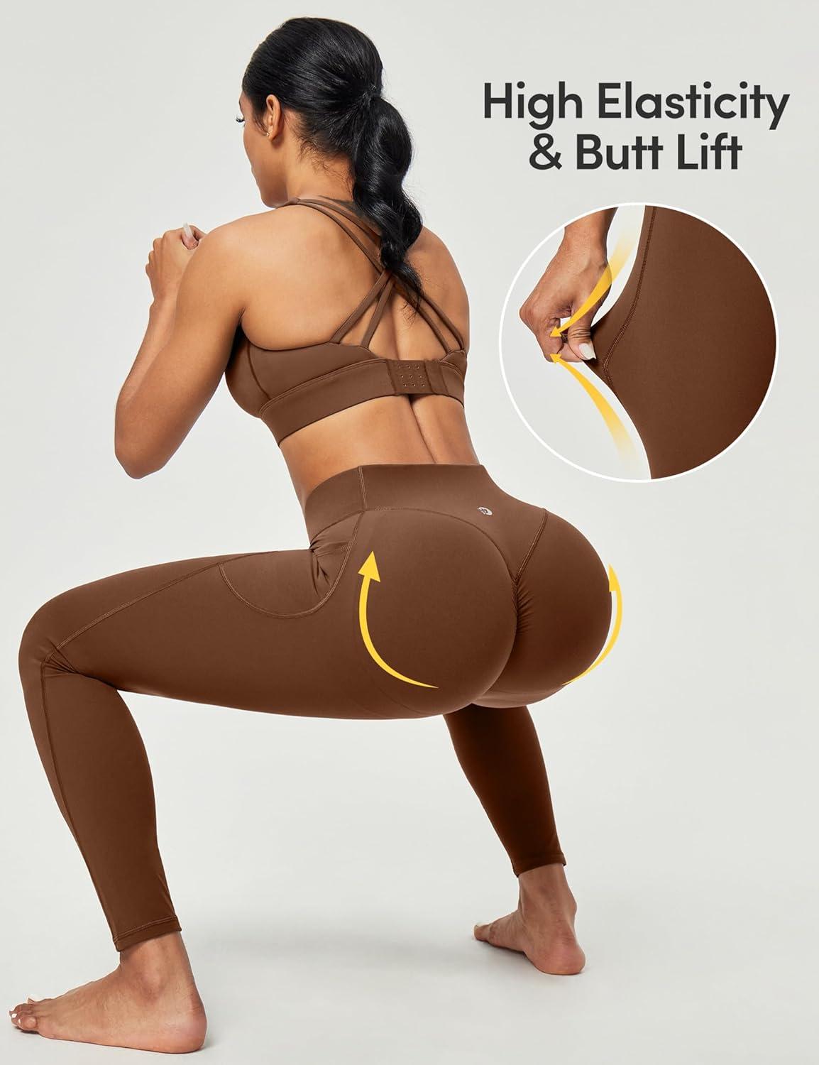 Scrunch Butt Lifting Leggings for Women Tummy Control No Front Seam Compression Workout Leggings with Pockets Yoga Pants(Brown)