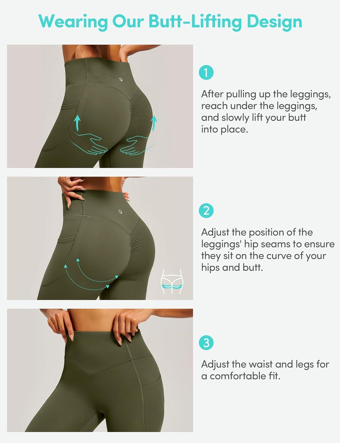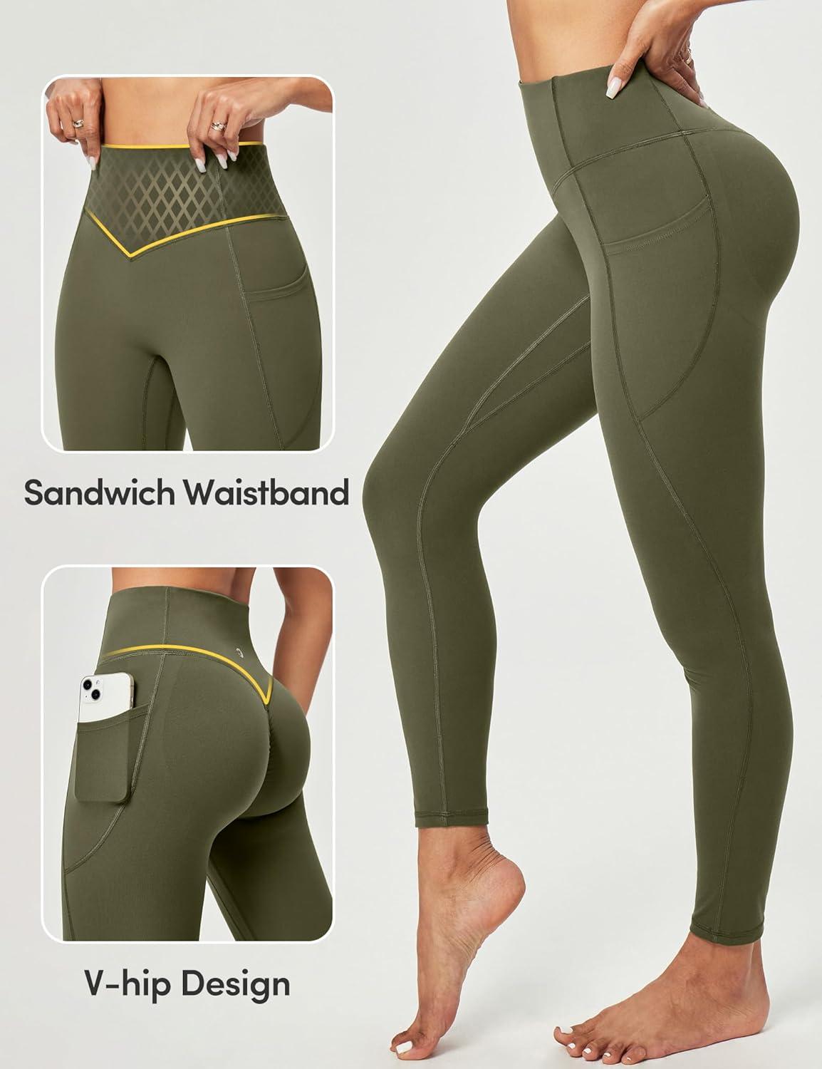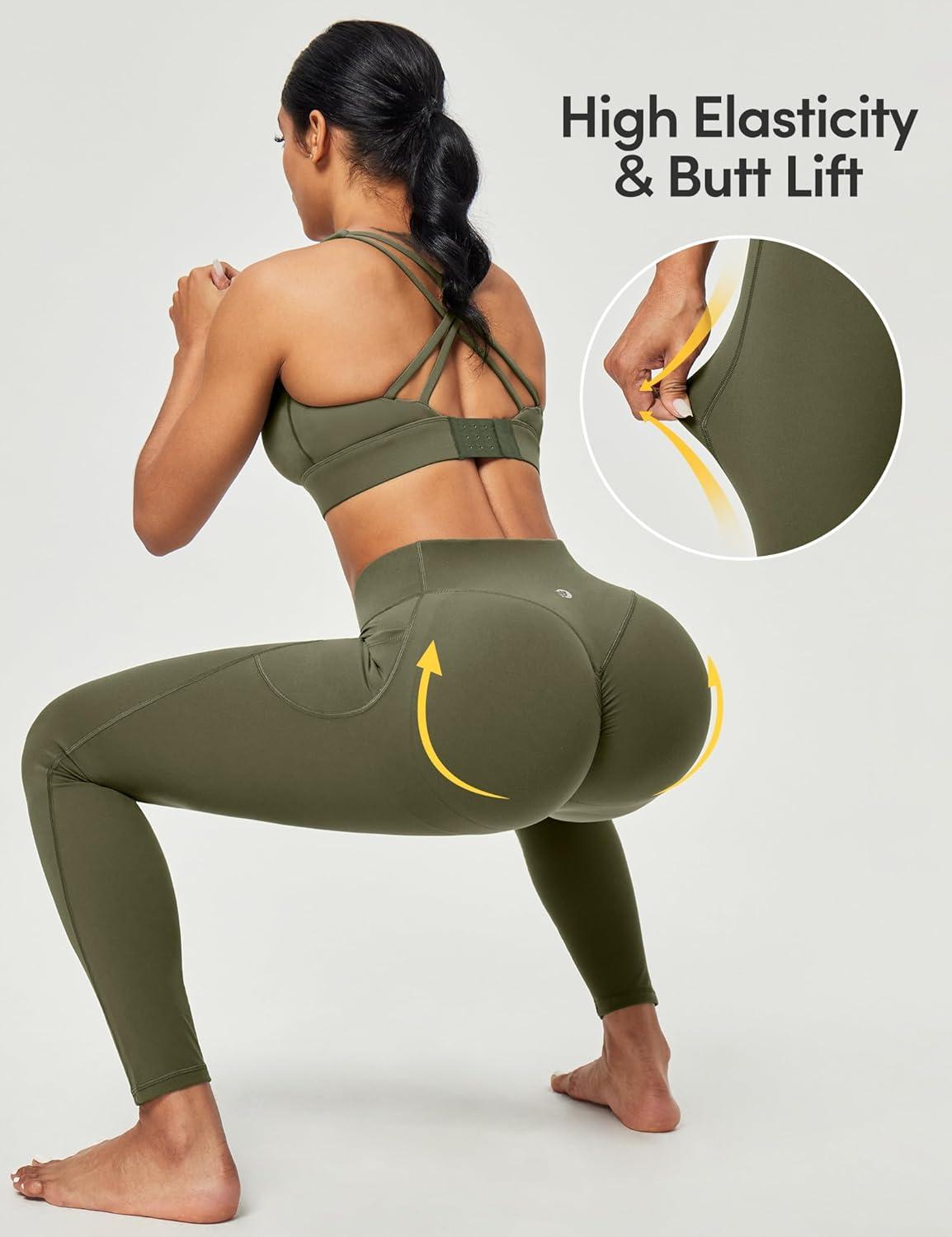 Scrunch Butt Lifting Leggings for Women Tummy Control No Front Seam Compression Workout Leggings with Pockets Yoga Pants(Grass Grey Green)