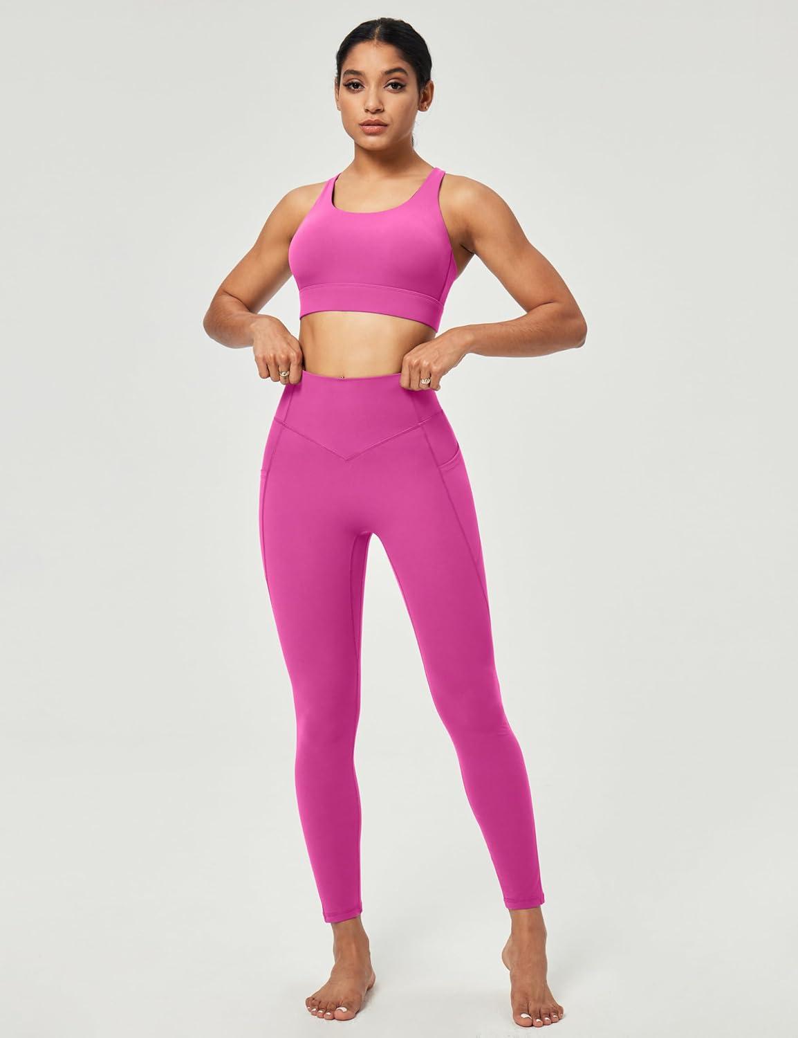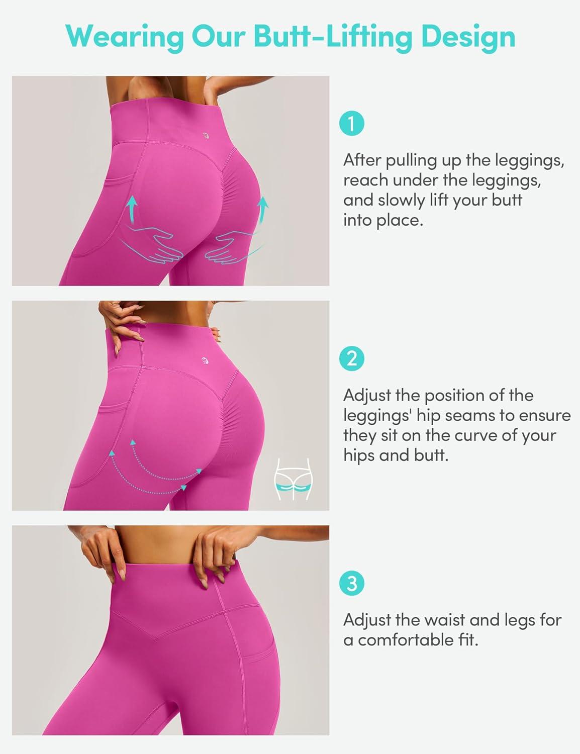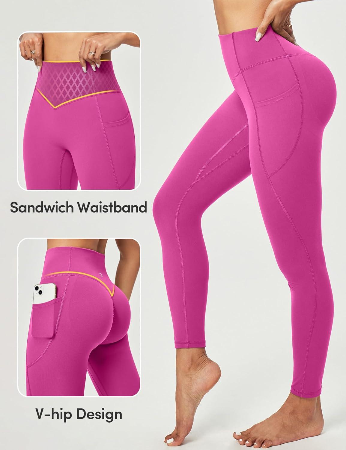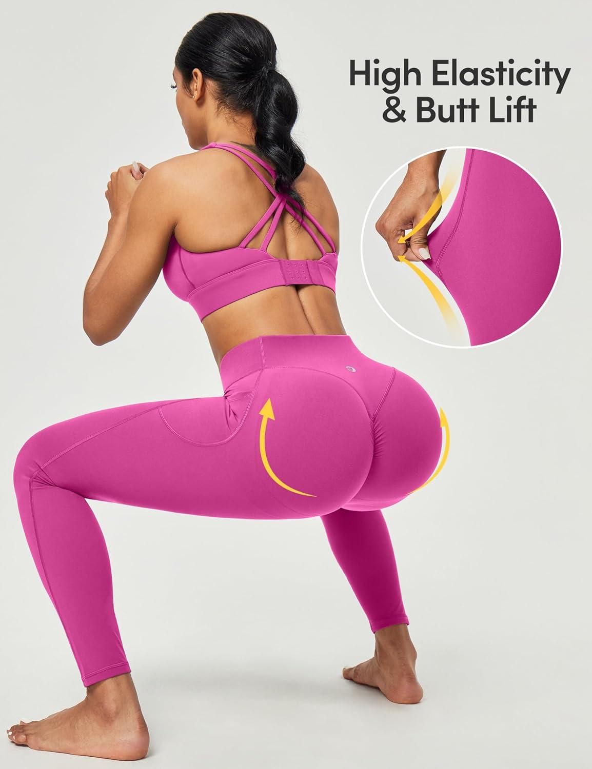Scrunch Butt Lifting Leggings for Women Tummy Control No Front Seam Compression Workout Leggings with Pockets Yoga Pants(Pink Power)