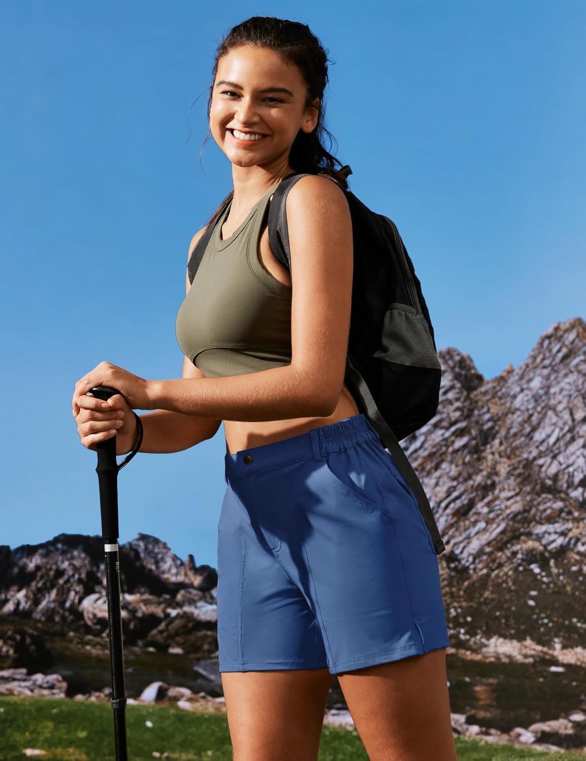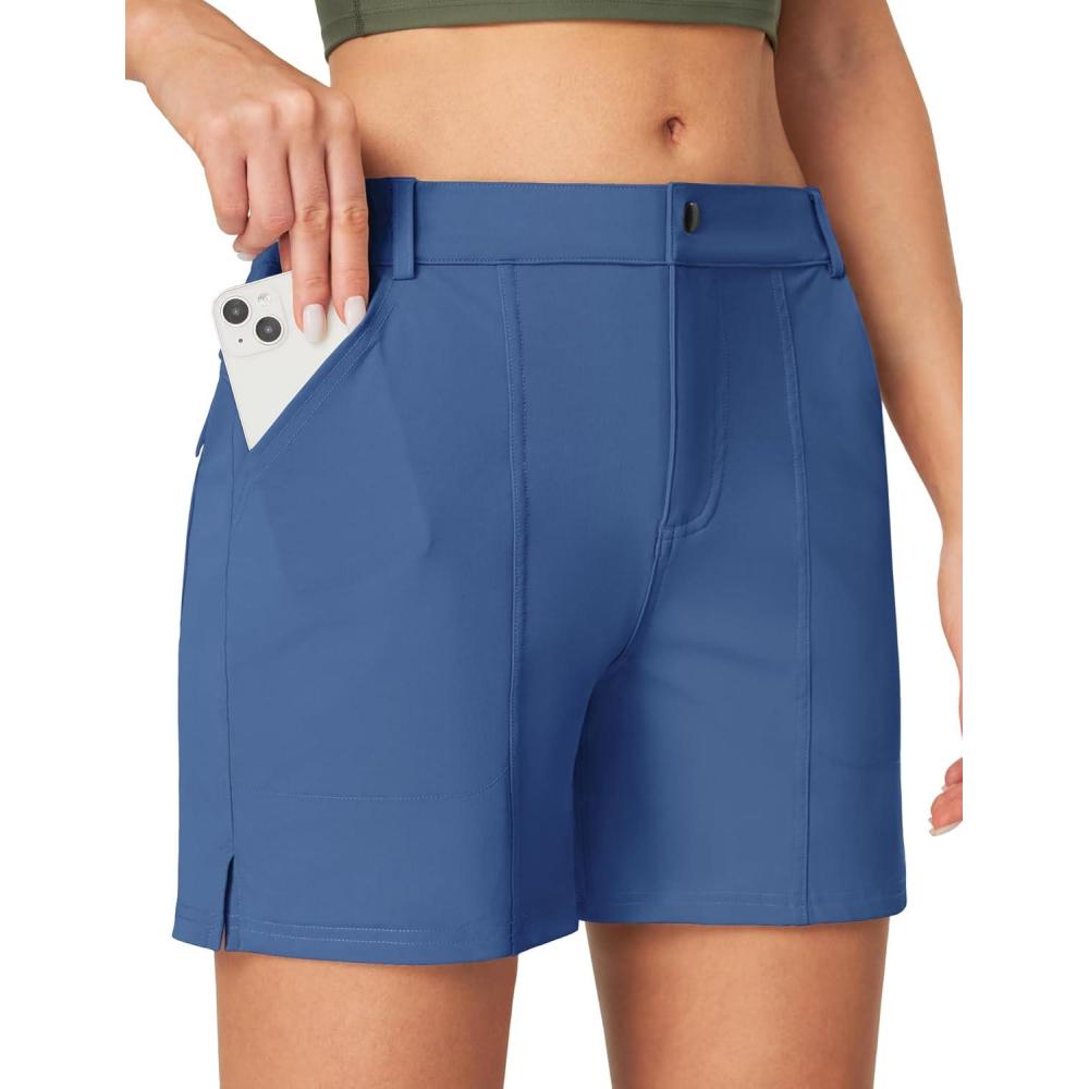 IUGA 5″ Hiking Golf Shorts with Pockets Quick Dry Womens Cargo Shorts Casual Summer Short(Steel Blue)