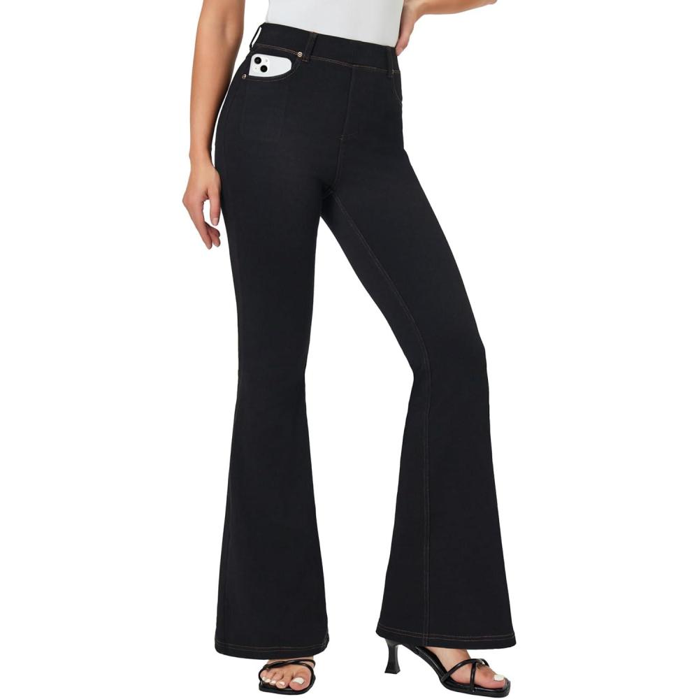 IUGA Bell Bottom Jeans for Women High Waisted Stretchy Pull On Flare Jeans Wide Leg Leggings Tummy Control Flare Pants(Black)