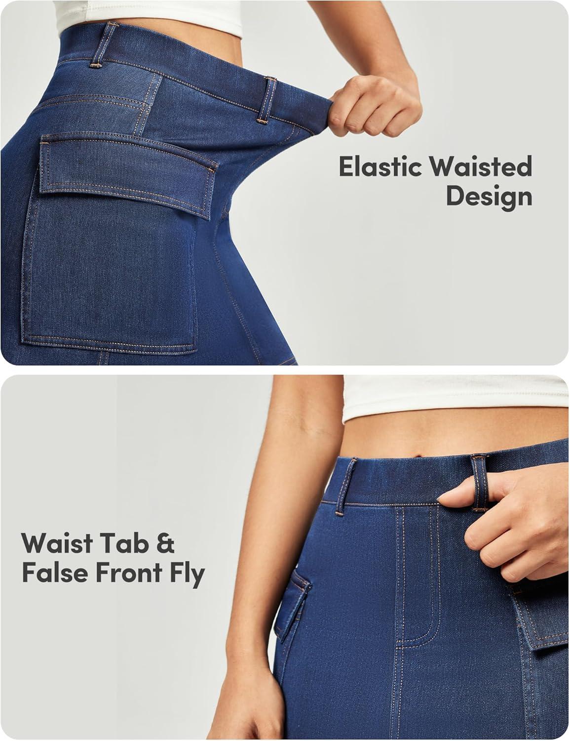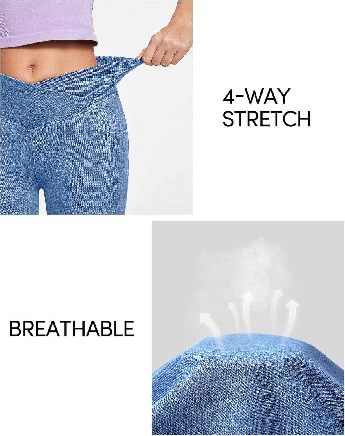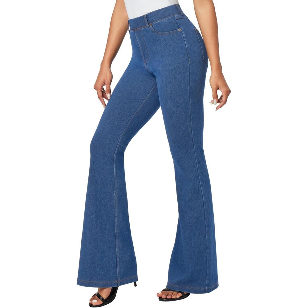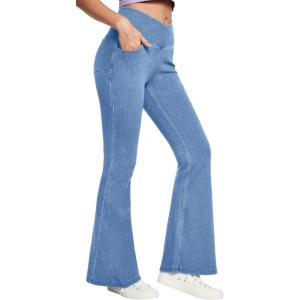 IUGA Bell Bottom Jeans for Women High Waisted Stretchy Pull On Flare Jeans Wide Leg Leggings Tummy Control Flare Pants(Light Blue)