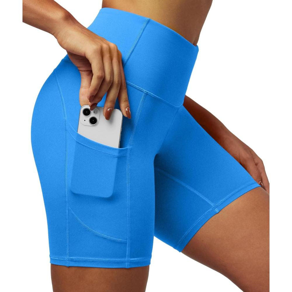 IUGA Biker Shorts Women 6″ Tummy Control Workout Shorts Women with Pockets High Waisted Yoga Running Gym Spandex Compression(Azure)