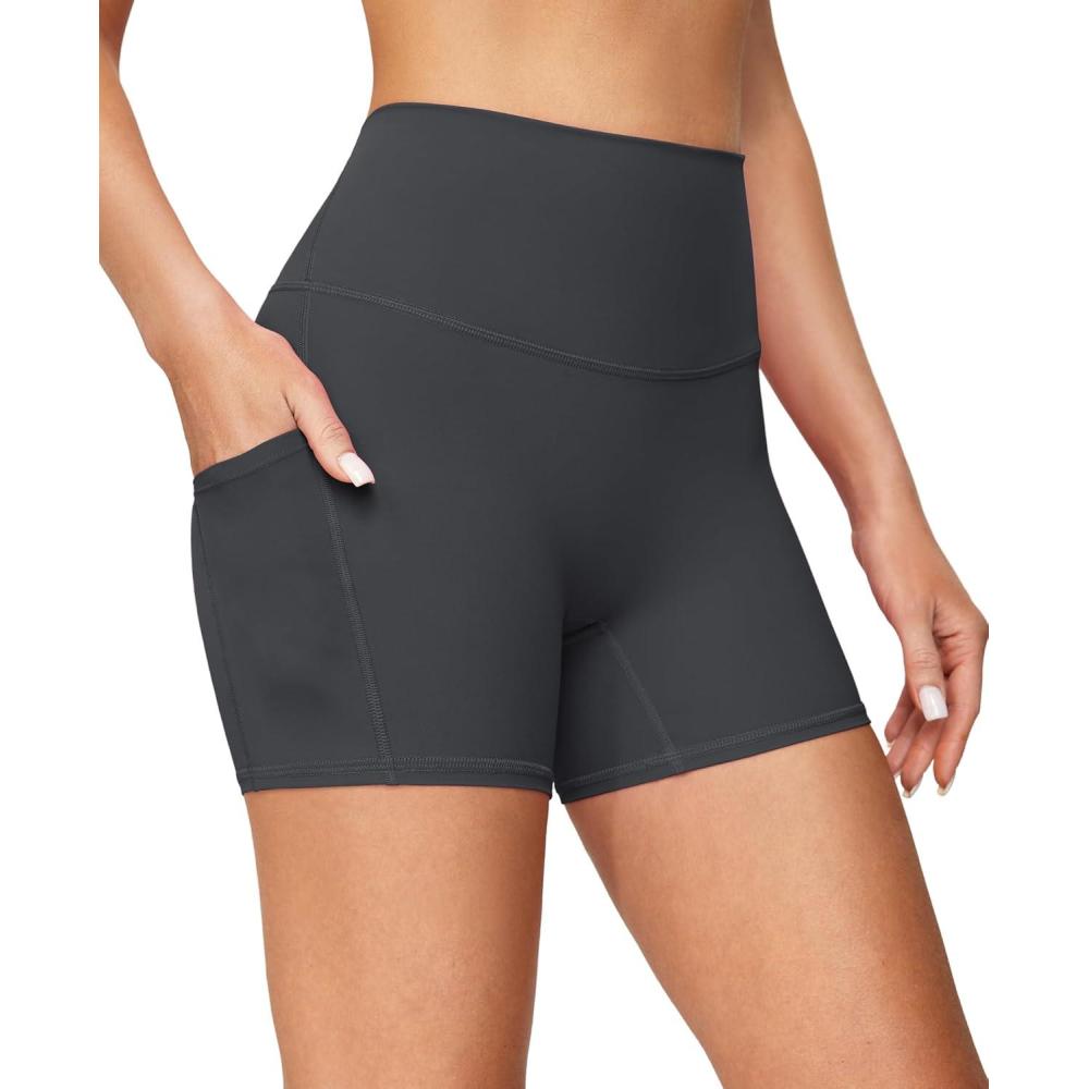 IUGA Biker Shorts Women with Pockets No Front Seam 4″ Yoga Spandex Shorts Women Workout Running High Waisted Tummy Control(Ink Grey)