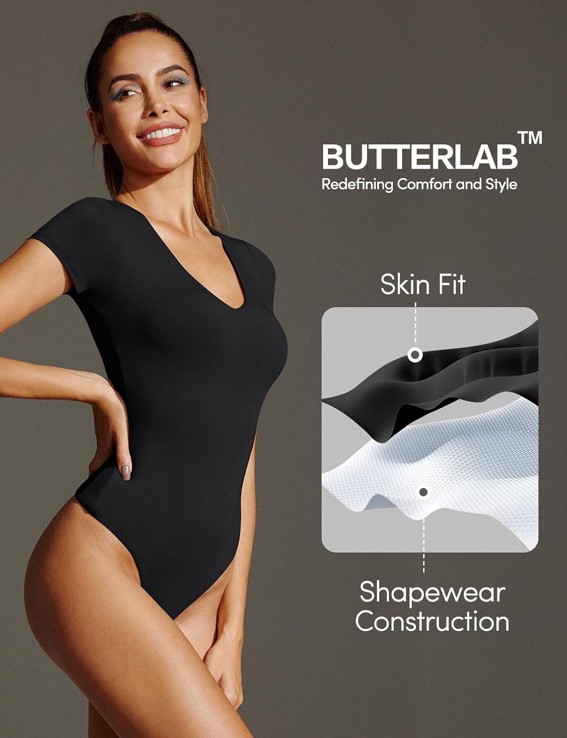 IUGA Bodysuits for Women Tummy Control Body Suits for Womens Compression Slimming Thong Bodysuit V Neck(Black)