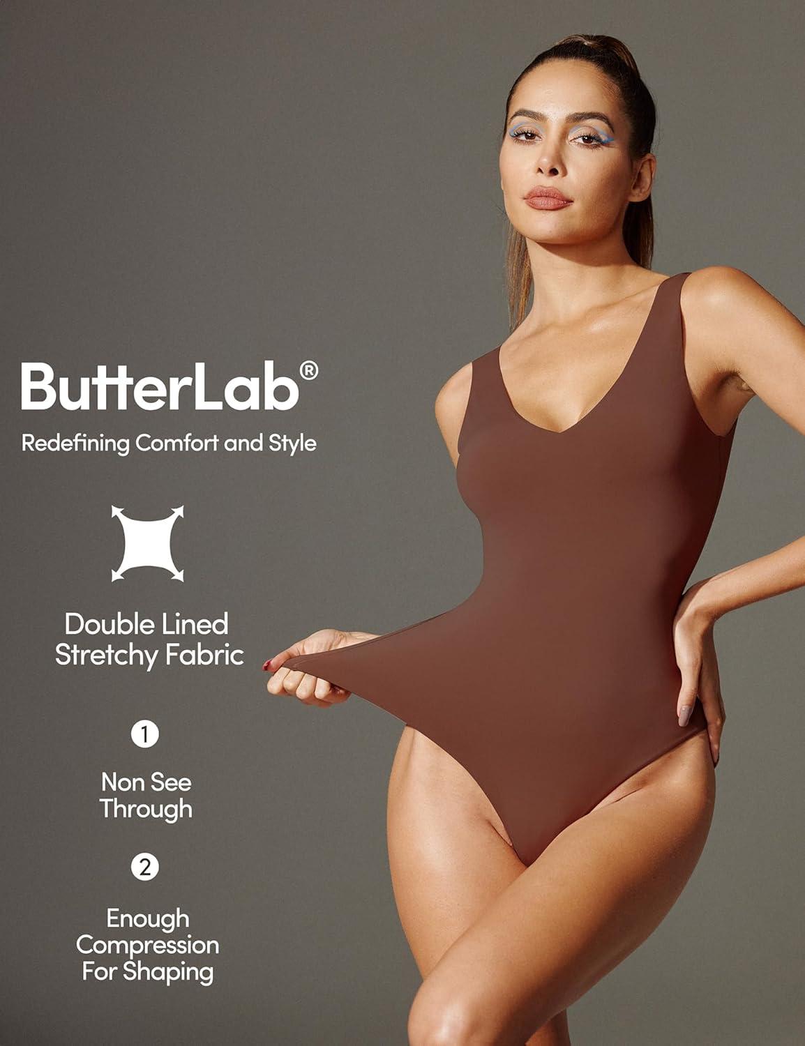 IUGA Bodysuits for Women Tummy Control V Neck Backless Bodysuit Tops Sleeveless Tank Top Body Suits for Women(Brownie)