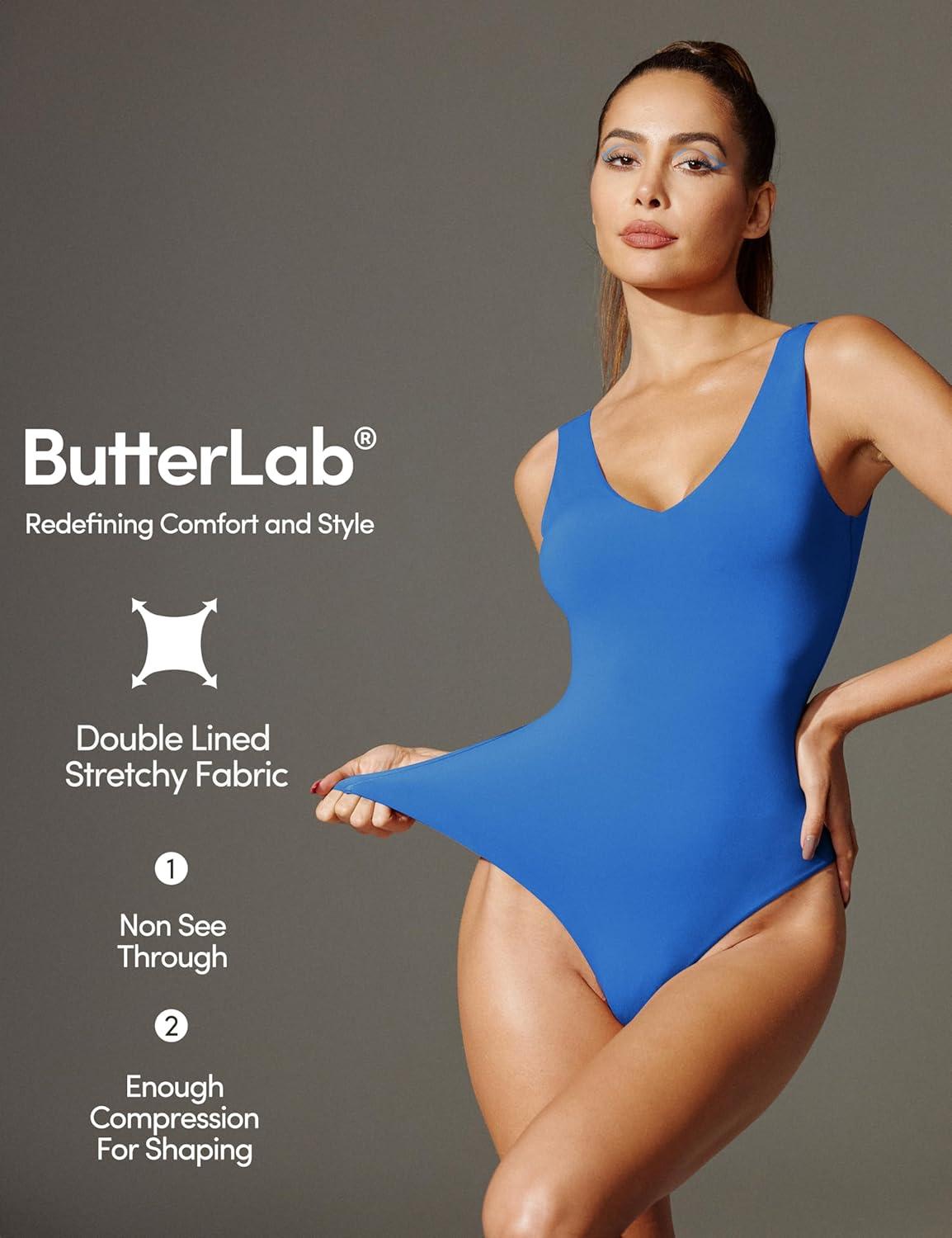 IUGA Bodysuits for Women Tummy Control V Neck Backless Bodysuit Tops Sleeveless Tank Top Body Suits for Women(Sapphire)