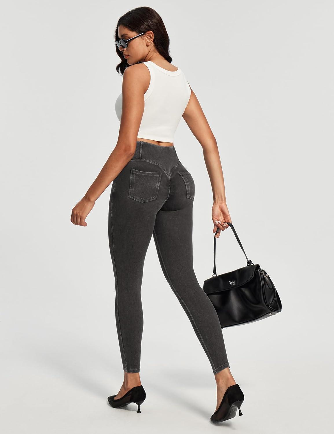 IUGA Butt Lifting Jeans for Women Trendy High Waisted Stretchy Women Jeans Skinny Jeggings Tummy Control with Pockets(Grey)
