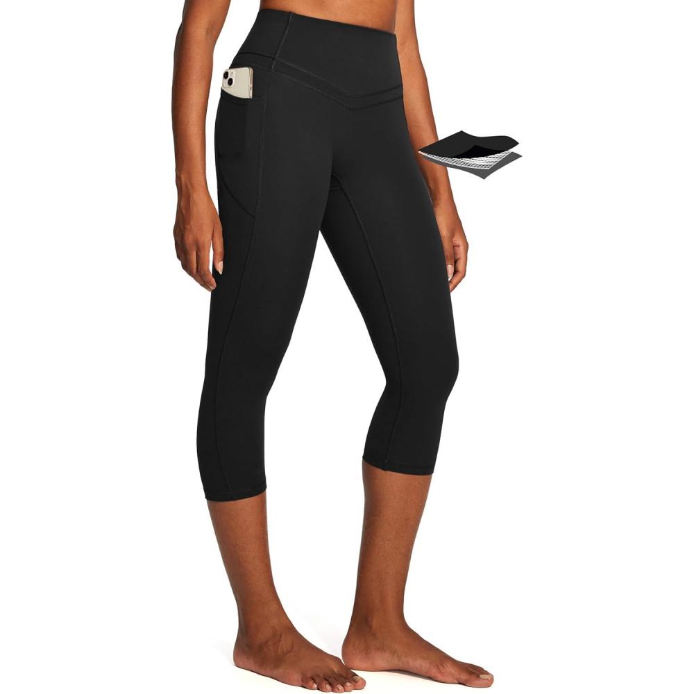 IUGA Capri Leggings for Women Tummy Control Compression Leggings Workout High Waist Athletic Yoga Pants with Pockets(Black)