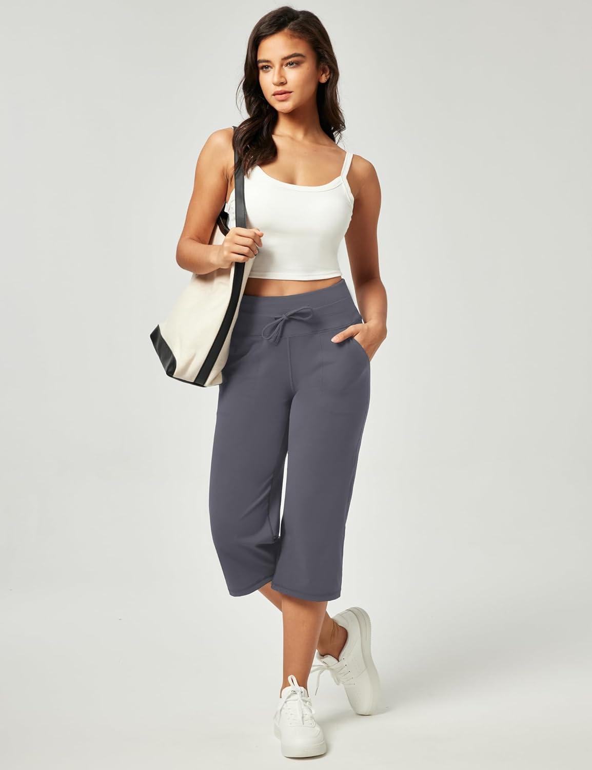 IUGA Capri Pants for Women Capris Wide Leg Pants Woman Yoga Pants with Pockets Loose Casual Work Flare Crop Pants(Dark Gray)