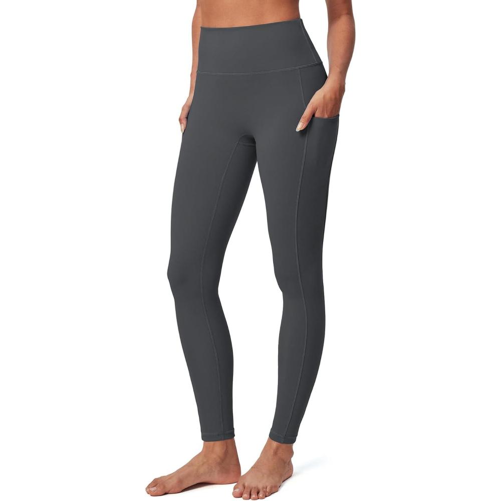 IUGA Compression Leggings for Women Tummy Control No Front Seam Leggings with Pockets High Waisted Workout Yoga Pants(Charcoal Gray)