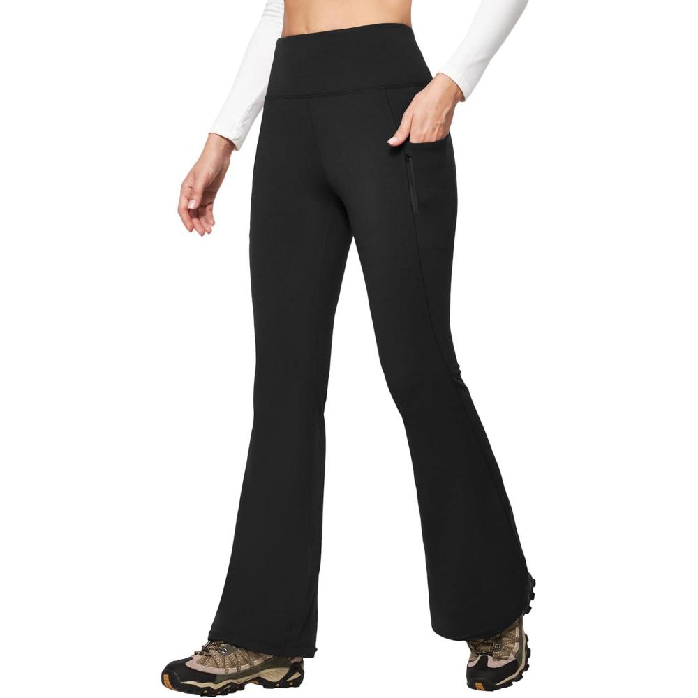 IUGA Fleece Lined Pants Women Water Resistant Hiking Pants Winter Flare Leggings with Pockets Bootcut Thermal(Black)