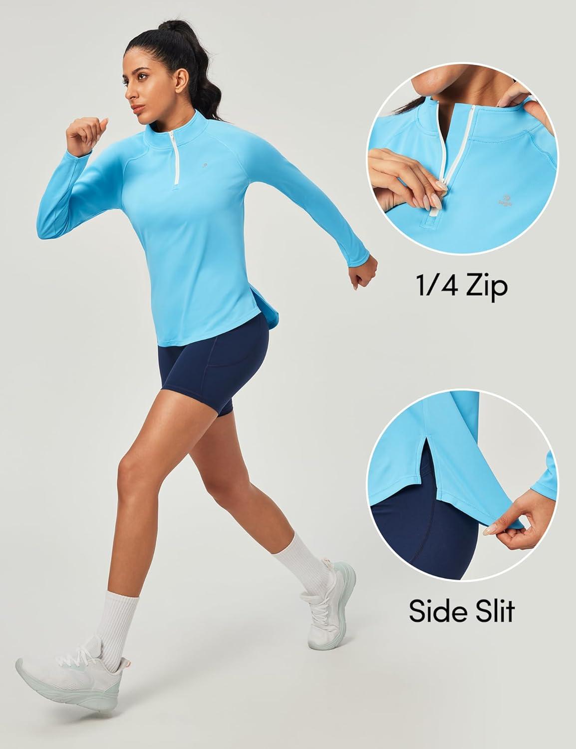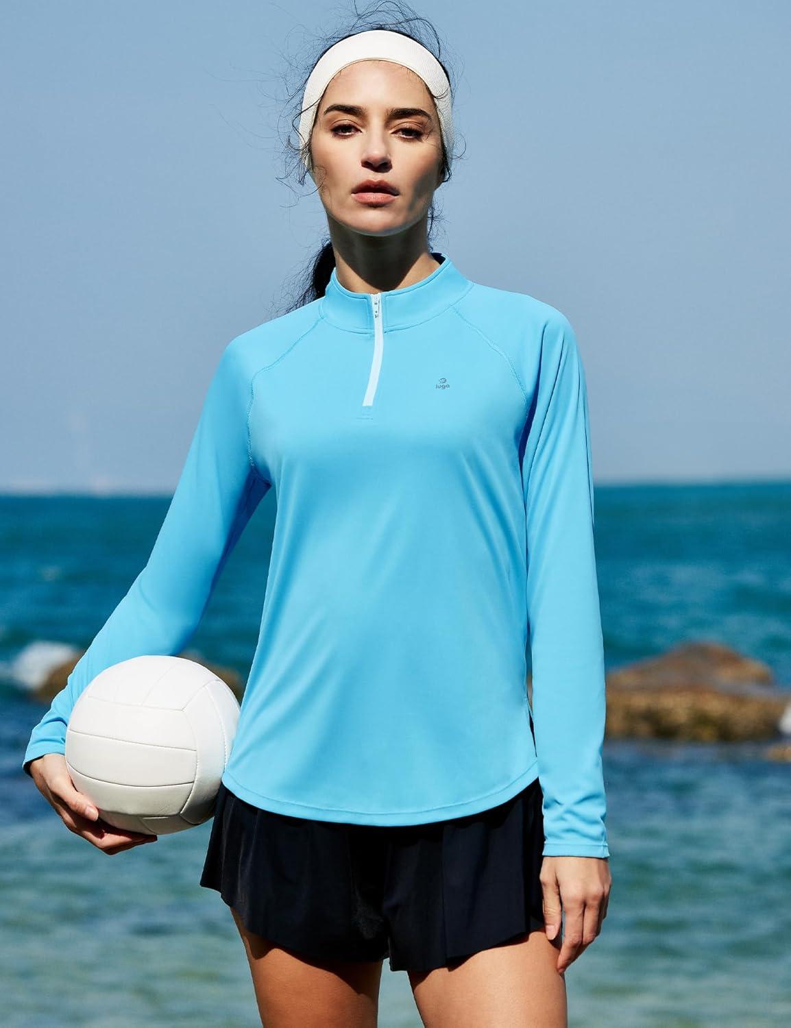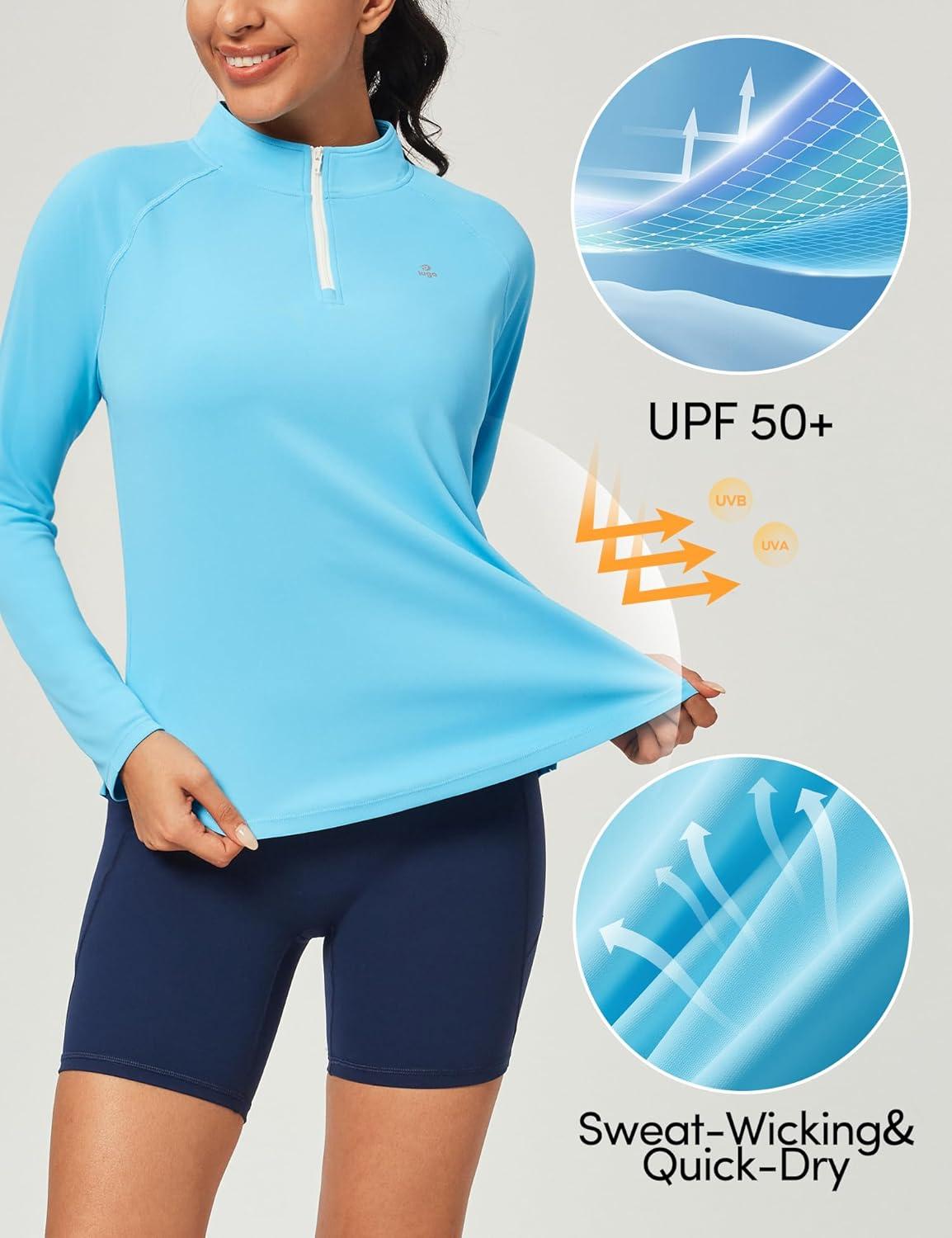 IUGA Golf Shirts for Woman SPF Shirts for Women Long Sleeve UPF 50+ UV Protection Shirt Quarter Zip Pullover(Light Blue)