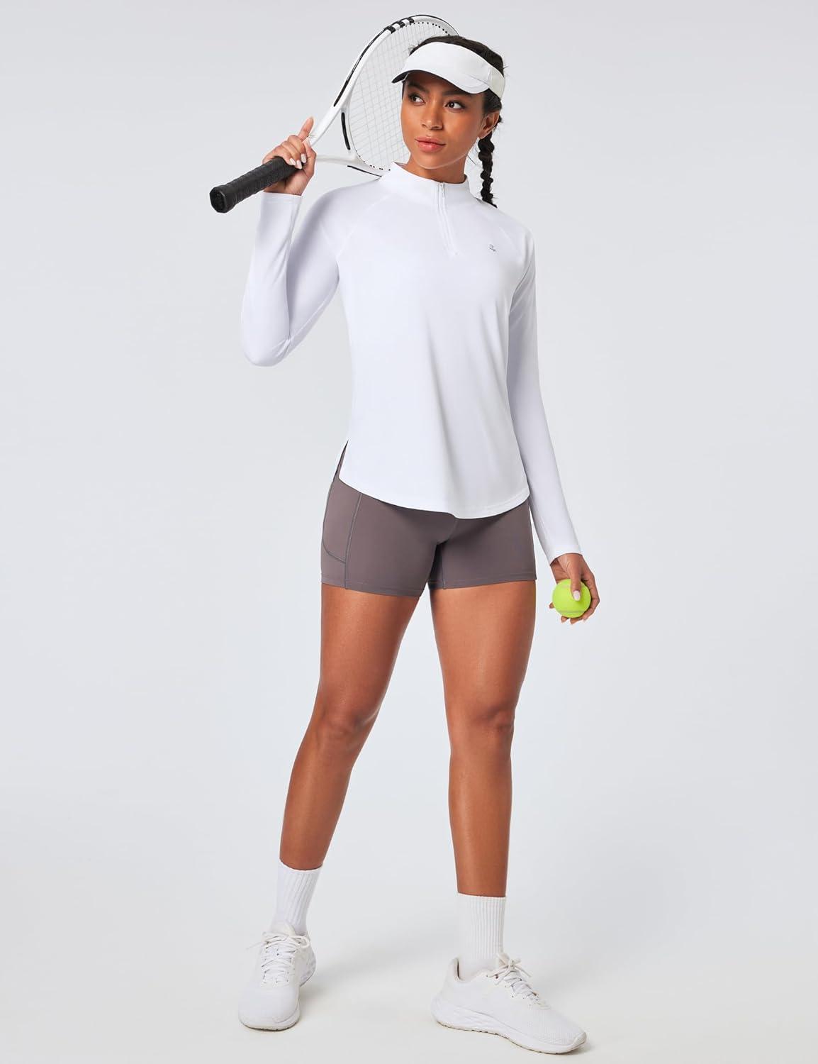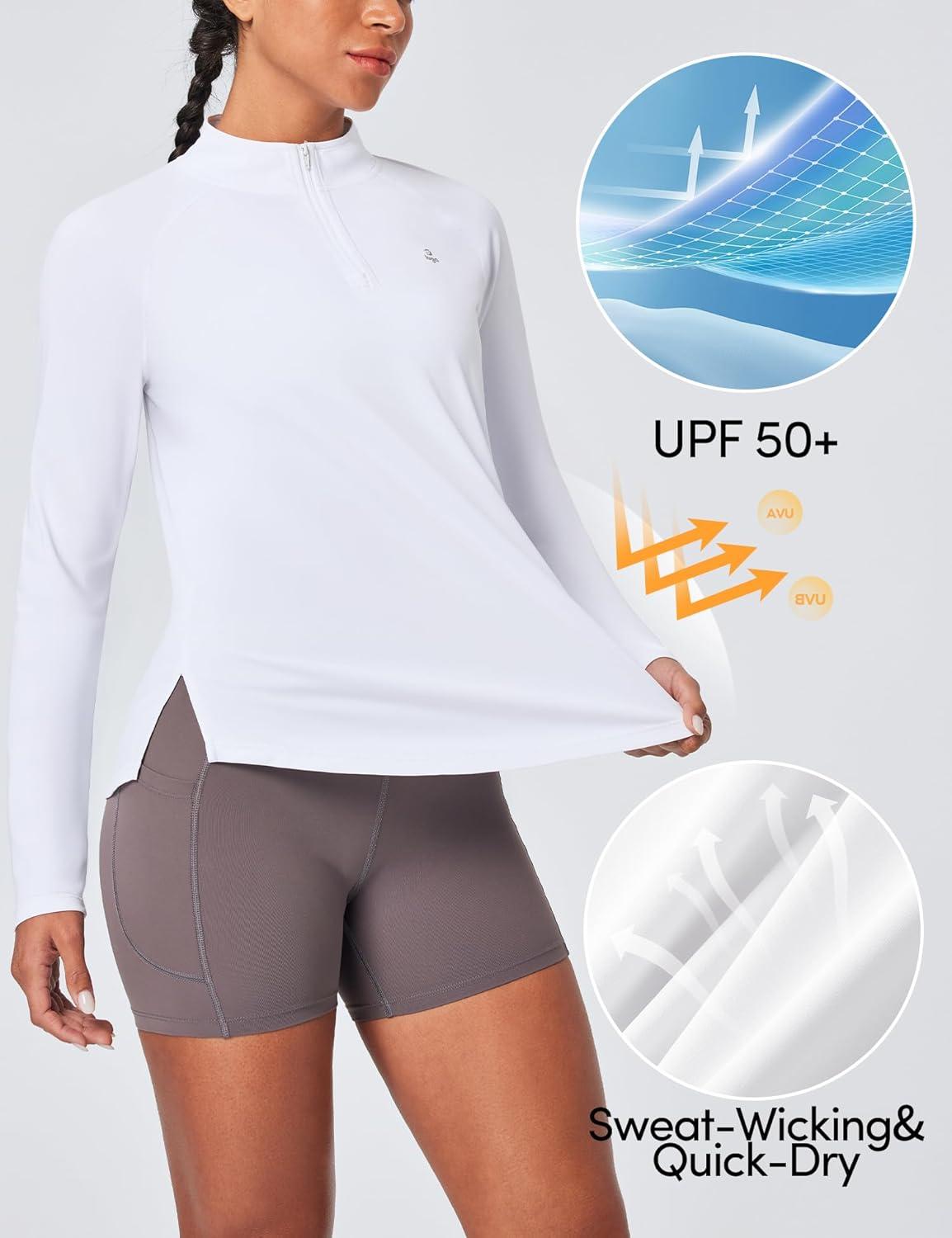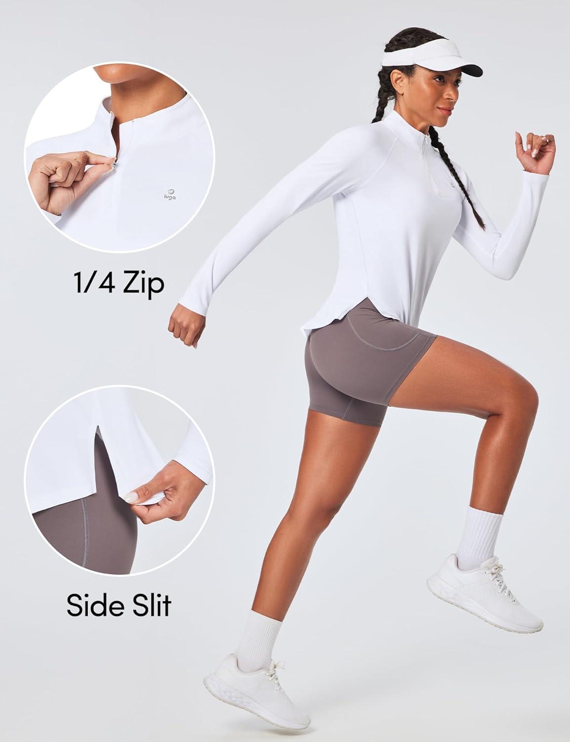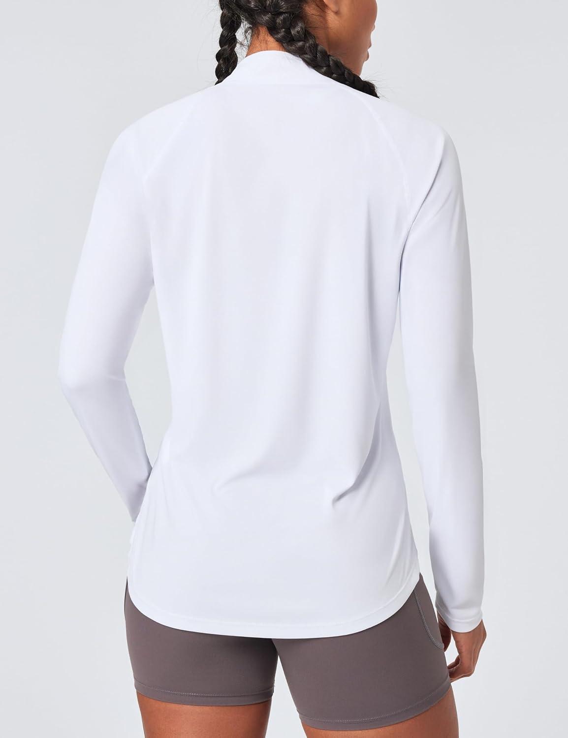 IUGA Golf Shirts for Woman SPF Shirts for Women Long Sleeve UPF 50+ UV Protection Shirt Quarter Zip Pullover(White)