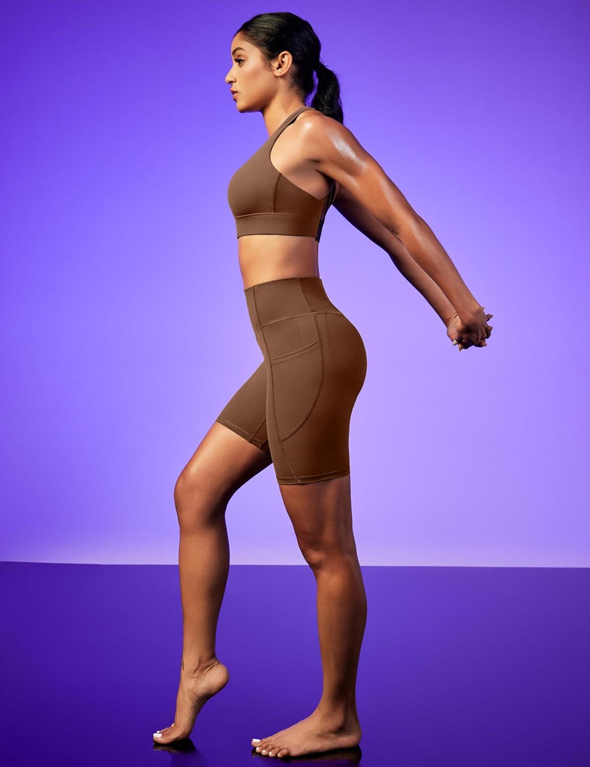 IUGA Gym Shorts Women Scrunch Butt Lifting Tummy Control Biker Shorts with Pockets High Waist Yoga Booty Workout Running 6″(Brown)