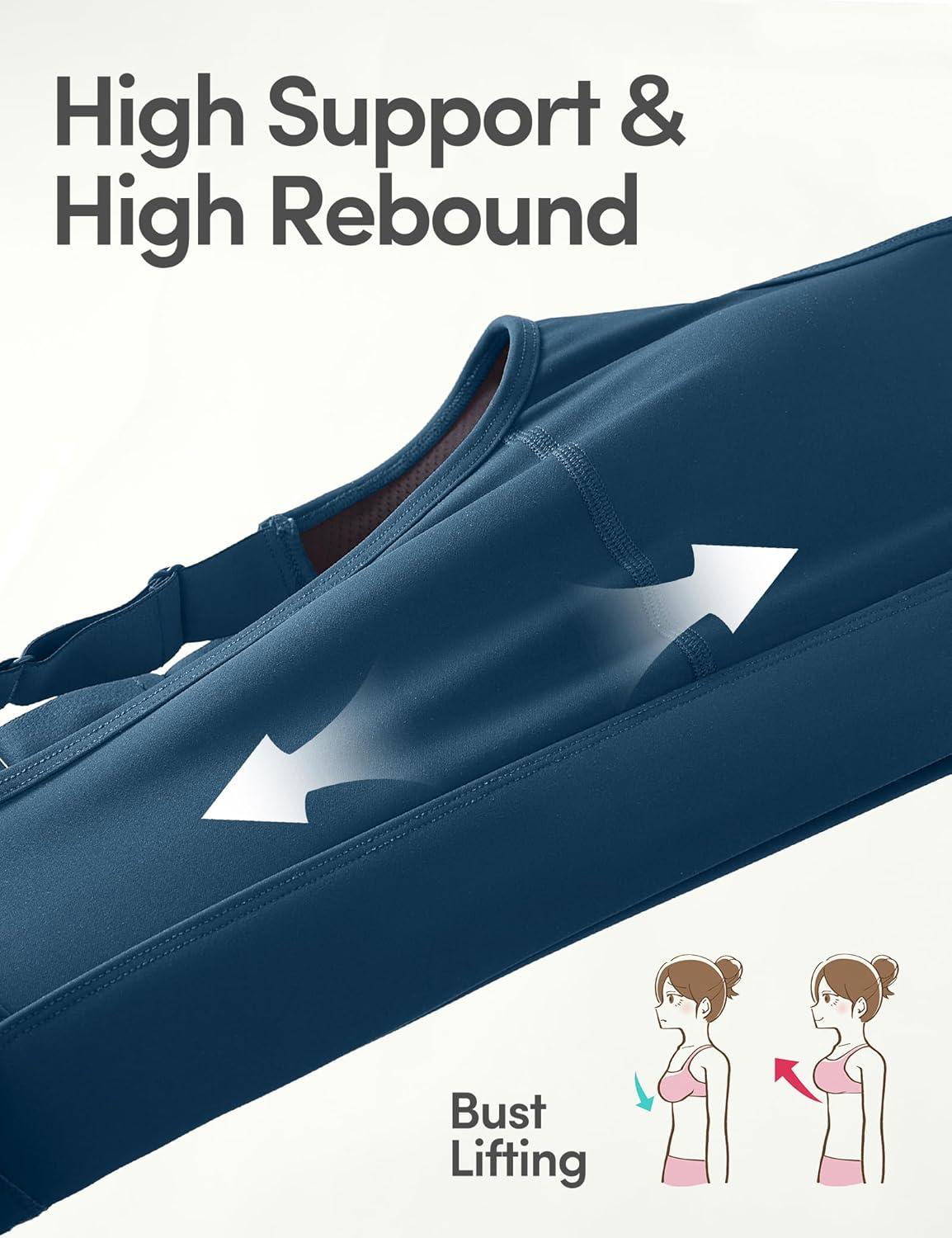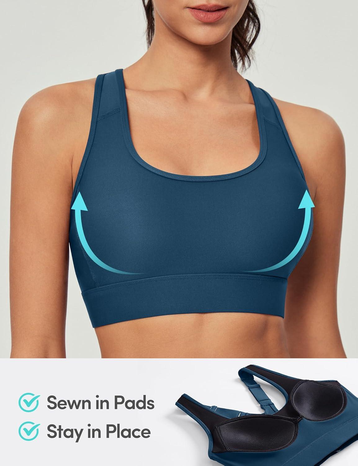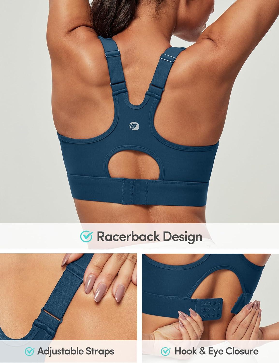 IUGA High Impact Sports Bras for Women High Support Racerback Sports Bra with Sewn-in Pads Adjustable Straps(Navy Blue)