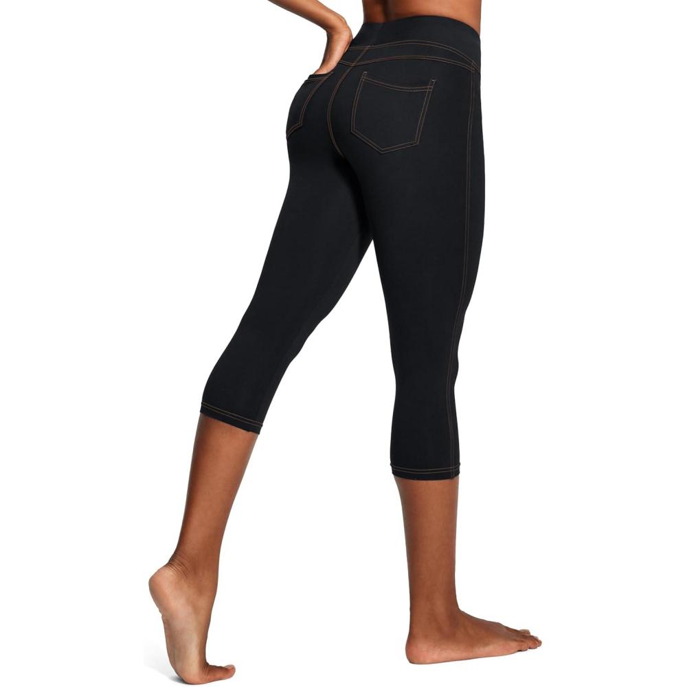 IUGA High Waisted Yoga Pants for Women with Pockets Capri Leggings for Women Workout Leggings for Women Yoga Capris(Black Jeans)