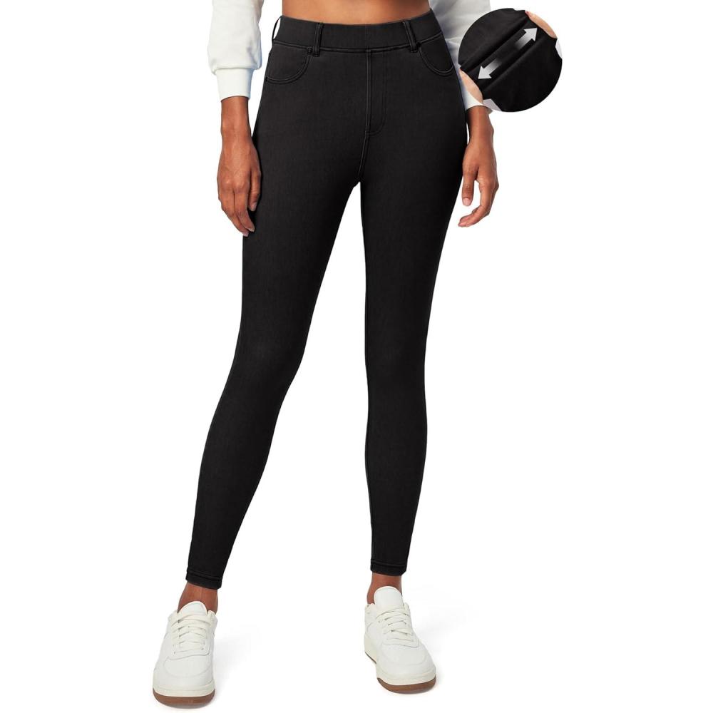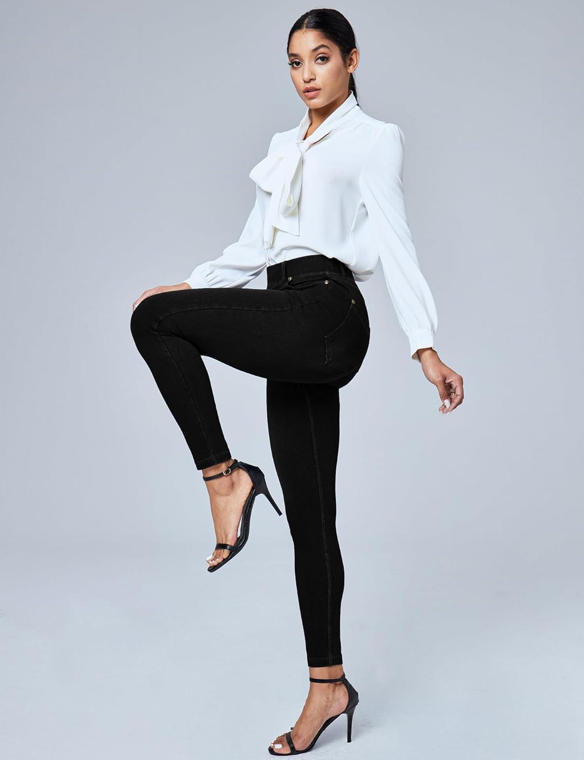 IUGA Jeggings for Women Tummy Control Stretchy Jeans for Women High Waisted Pull on Skinny Jean Leggings with Pockets Trendy(Black)