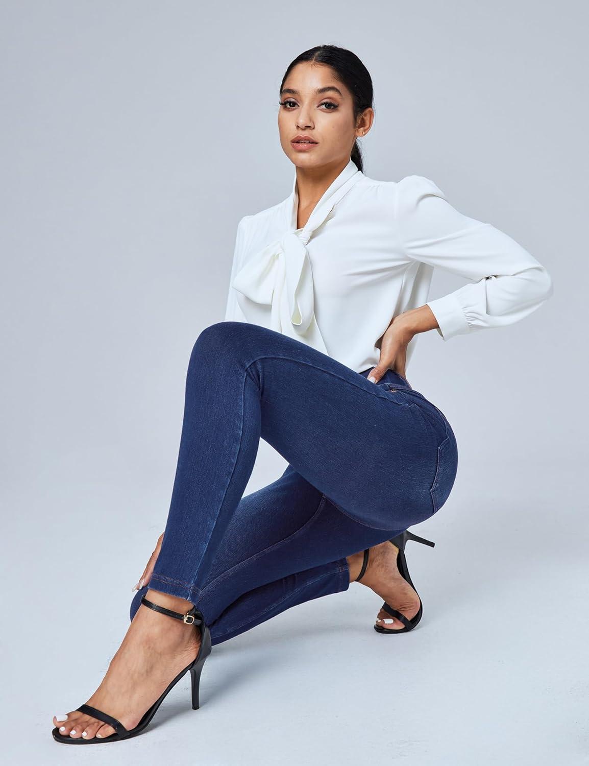 IUGA Jeggings for Women Tummy Control Stretchy Jeans for Women High Waisted Pull on Skinny Jean Leggings with Pockets Trendy(Hand-distressed Light Blue)