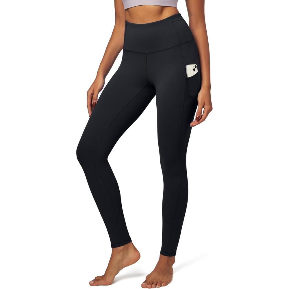 IUGA Leggings with Pockets for Women High Waisted Yoga Pants Women Tummy Control Workout Compression Running Leggings(Black)