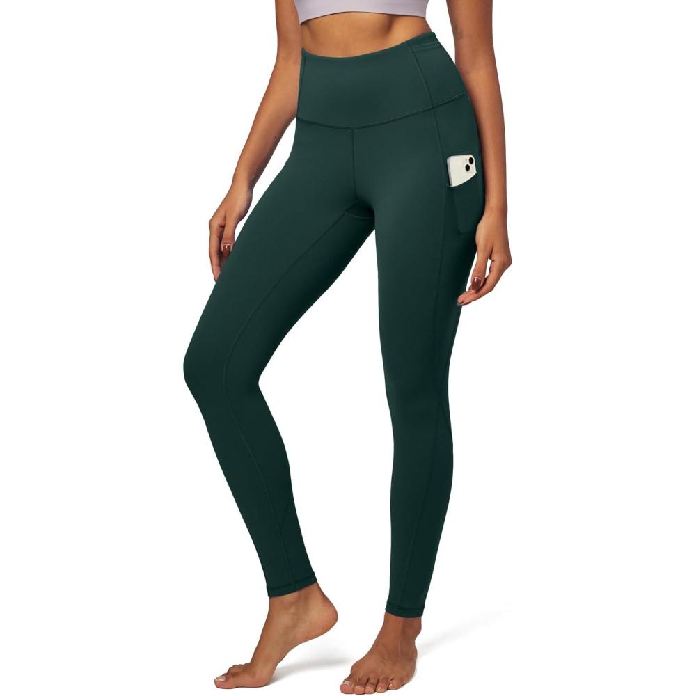 IUGA Leggings with Pockets for Women High Waisted Yoga Pants Women Tummy Control Workout Compression Running Leggings(Dark Green)