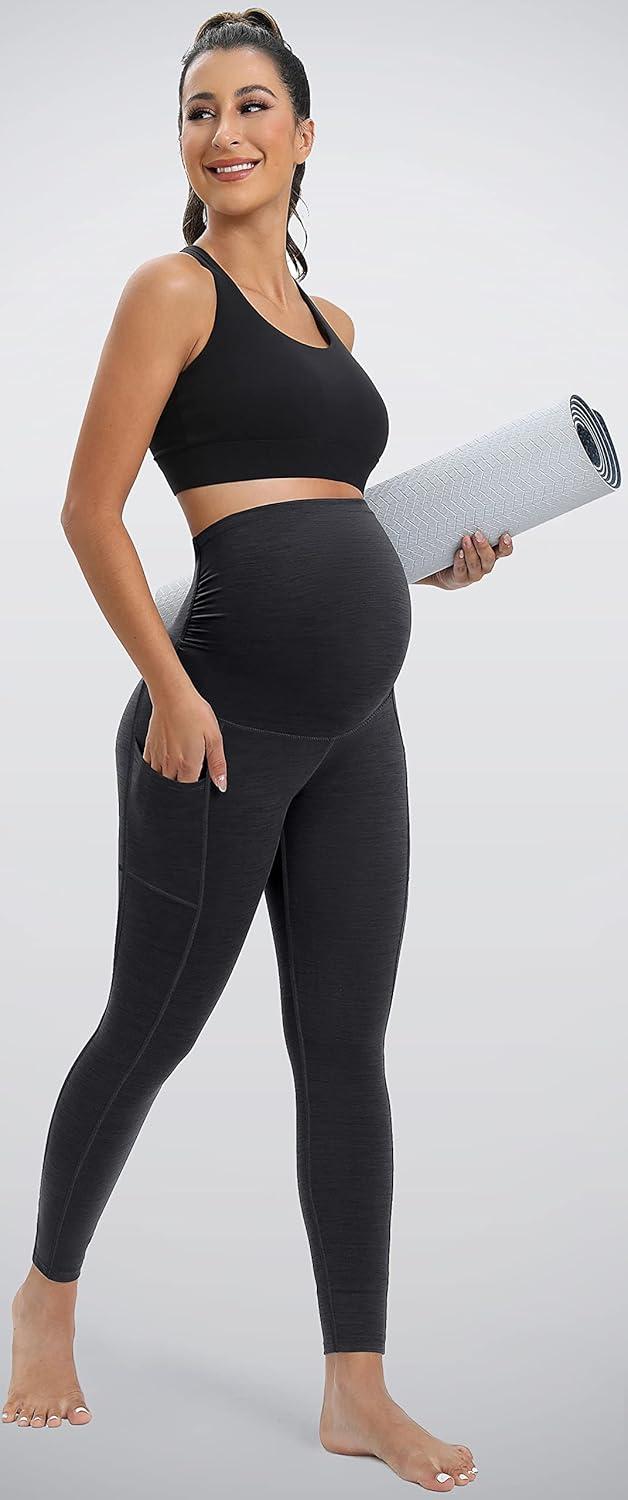 IUGA Maternity Leggings Over The Belly Buttery Soft Maternity Yoga Pants with Pockets Pregnancy Leggings for Women Activewear(Black)