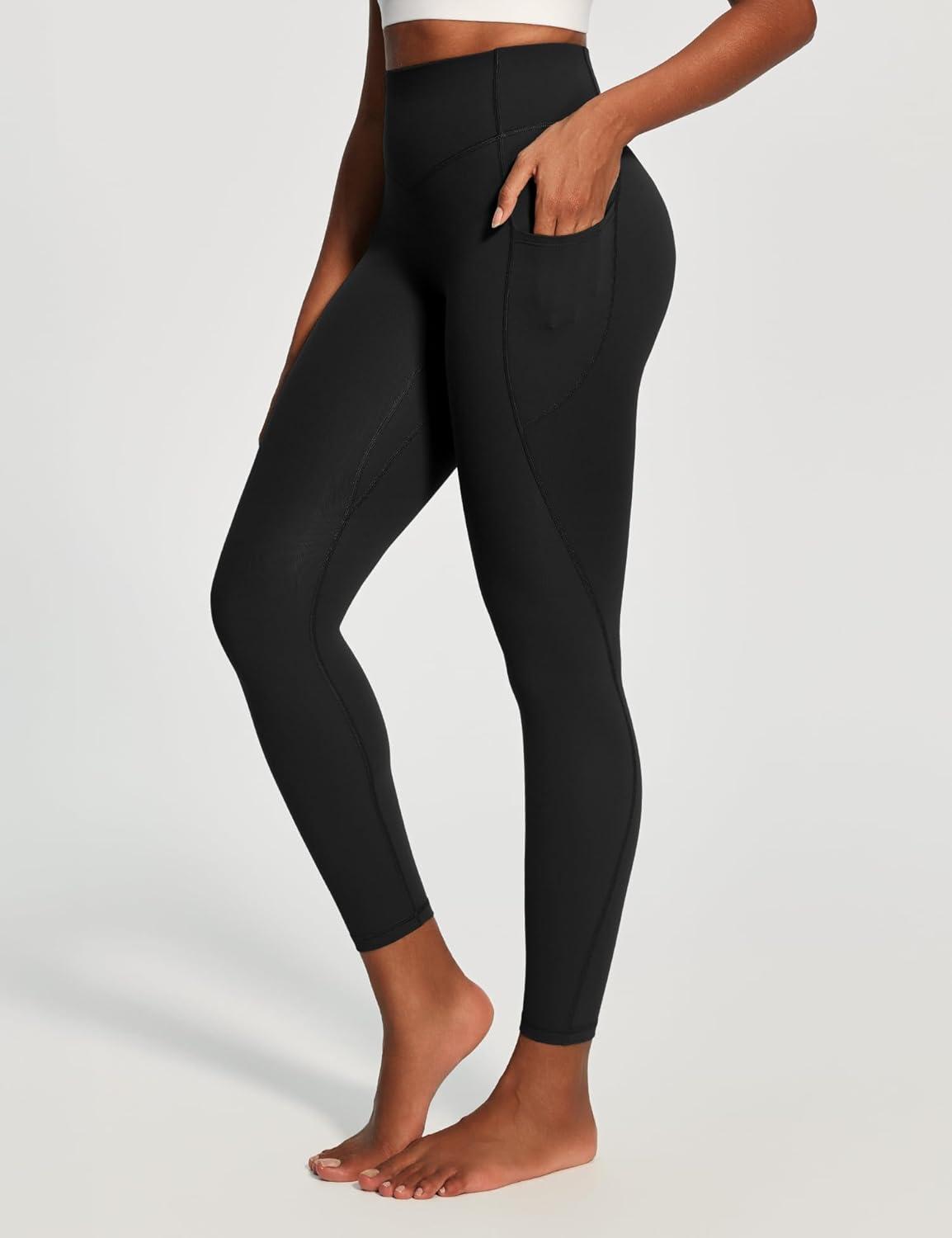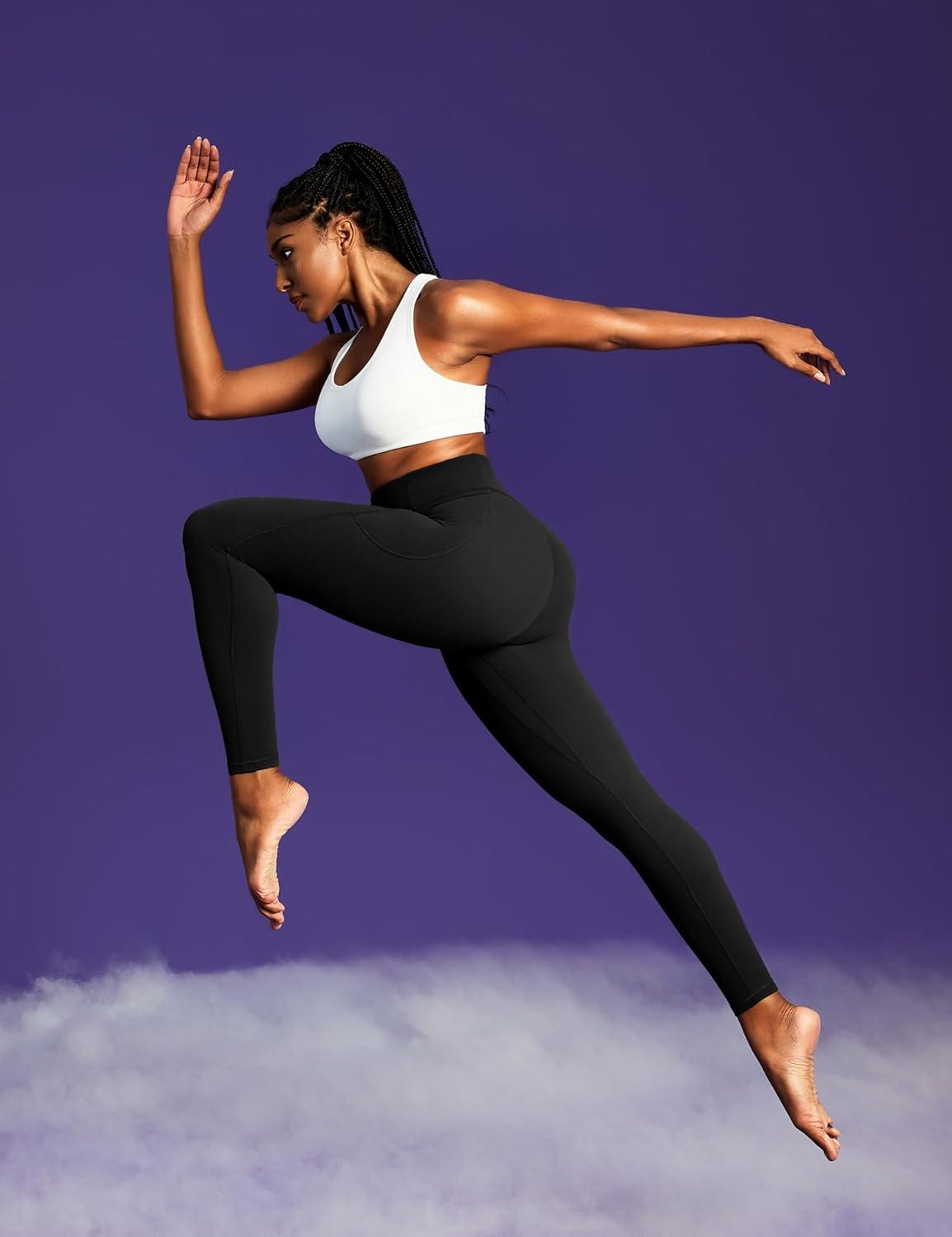IUGA Scrunch Butt Lifting Leggings for Women Workout Tummy Control No Front Seam Compression Leggings with Pockets Yoga Pants(Black)