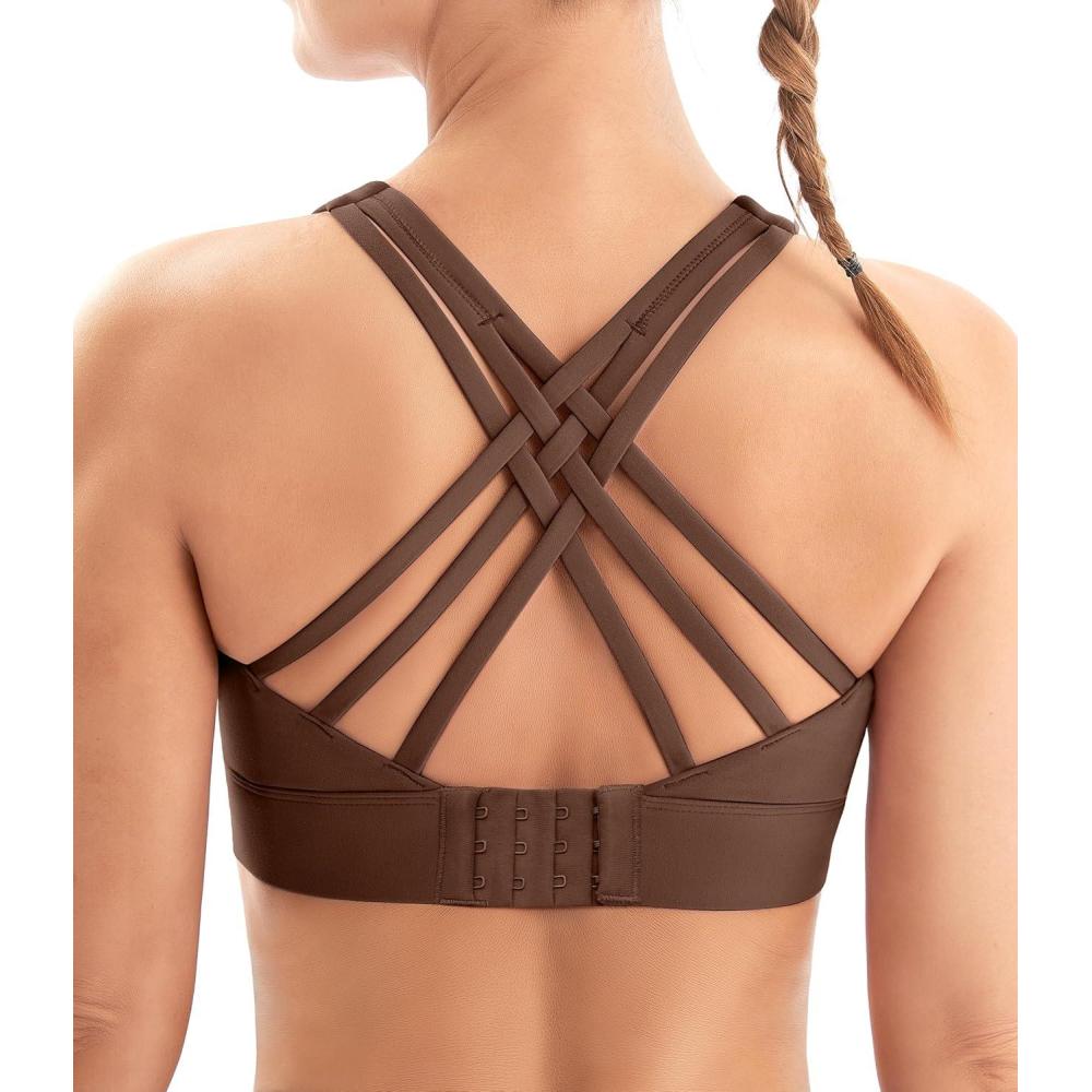 IUGA Sports Bras for Women High Support Large Bust High Impact Womens Sports Bras Strappy Padded Sports Bra(Brown)