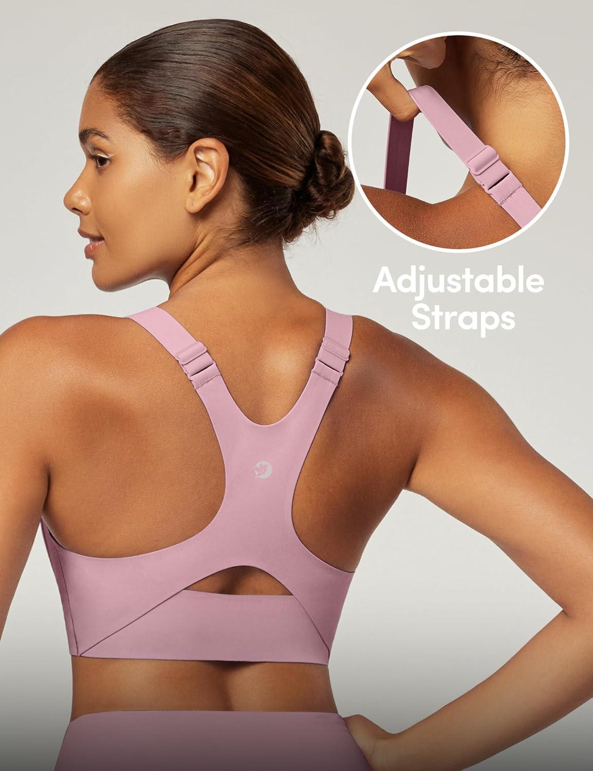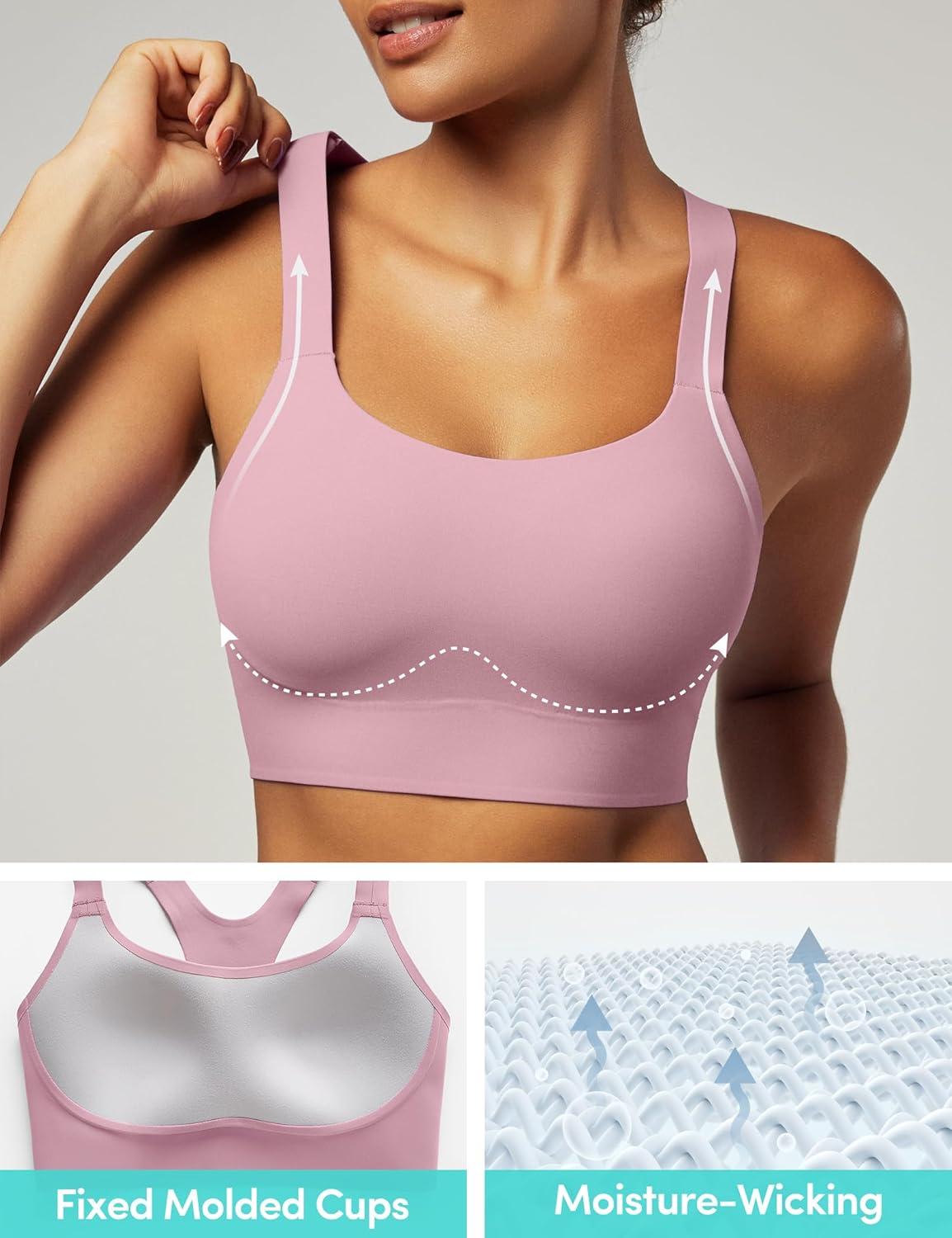 IUGA Sports Bras for Women High Support Womens Large Bust High Impact Sports Bras Wireless Push Up Racerback Workout Yoga Top(Pink)