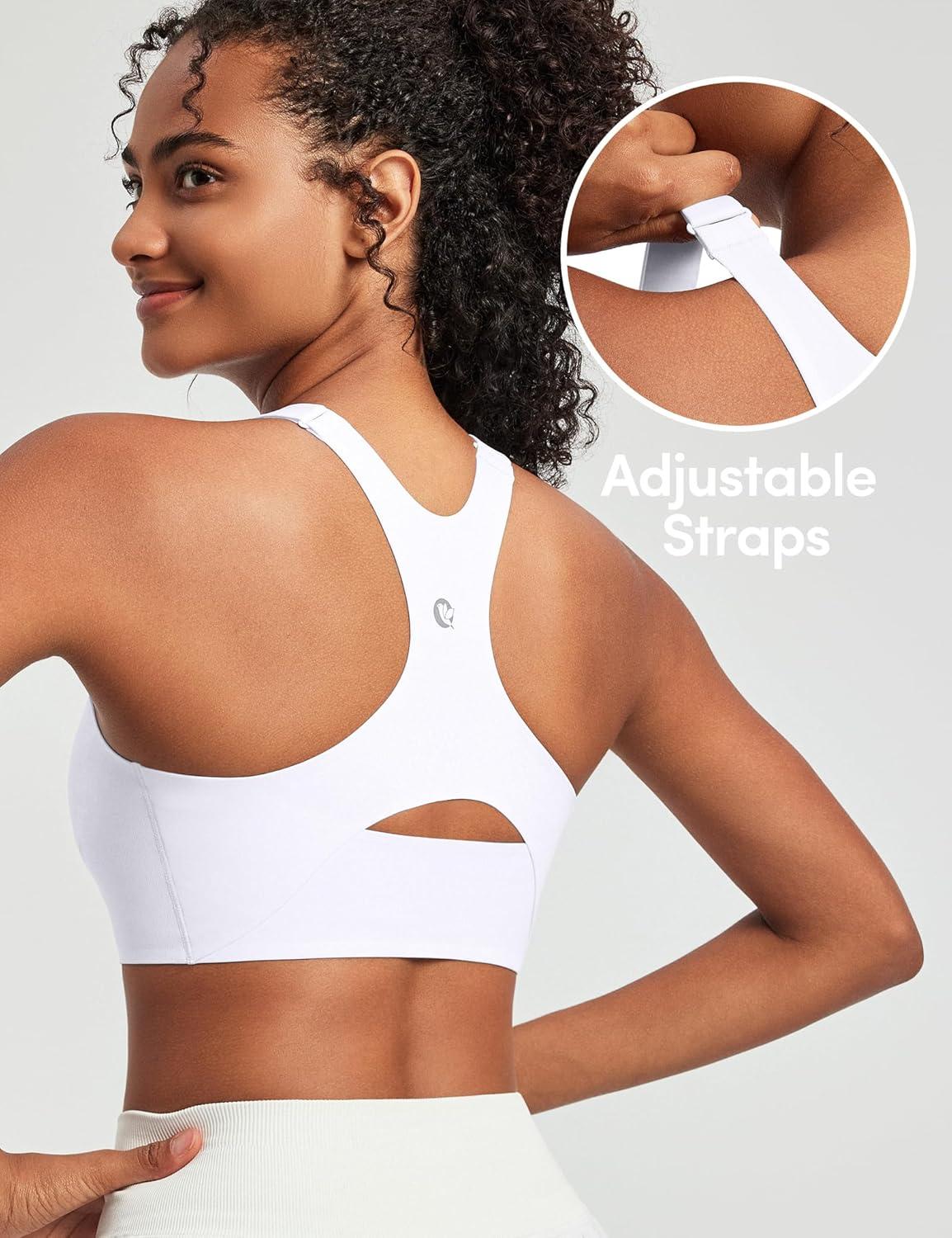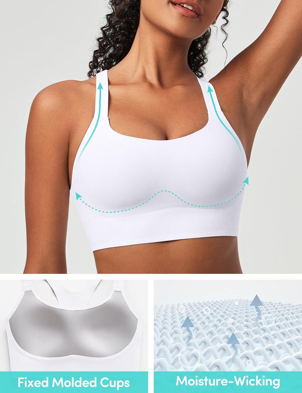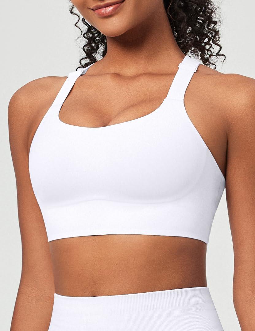 IUGA Sports Bras for Women High Support Womens Large Bust High Impact Sports Bras Wireless Push Up Racerback Workout Yoga Top(White)
