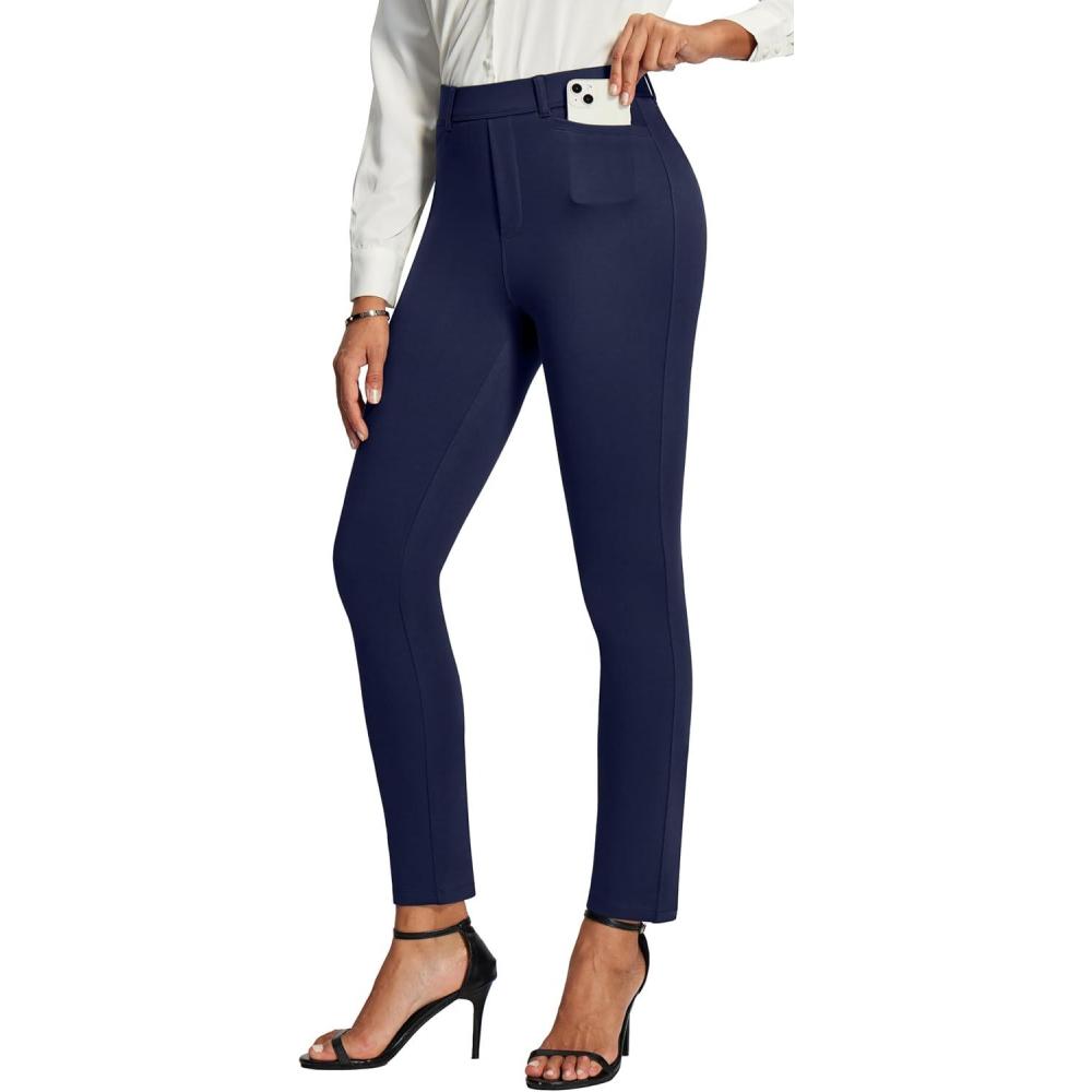 IUGA Stretchy Work Pants Women Pull On Skinny Dress Pants Women Slim Fit Office Teacher Business Casual Outfits with Pockets(Navy Blue)