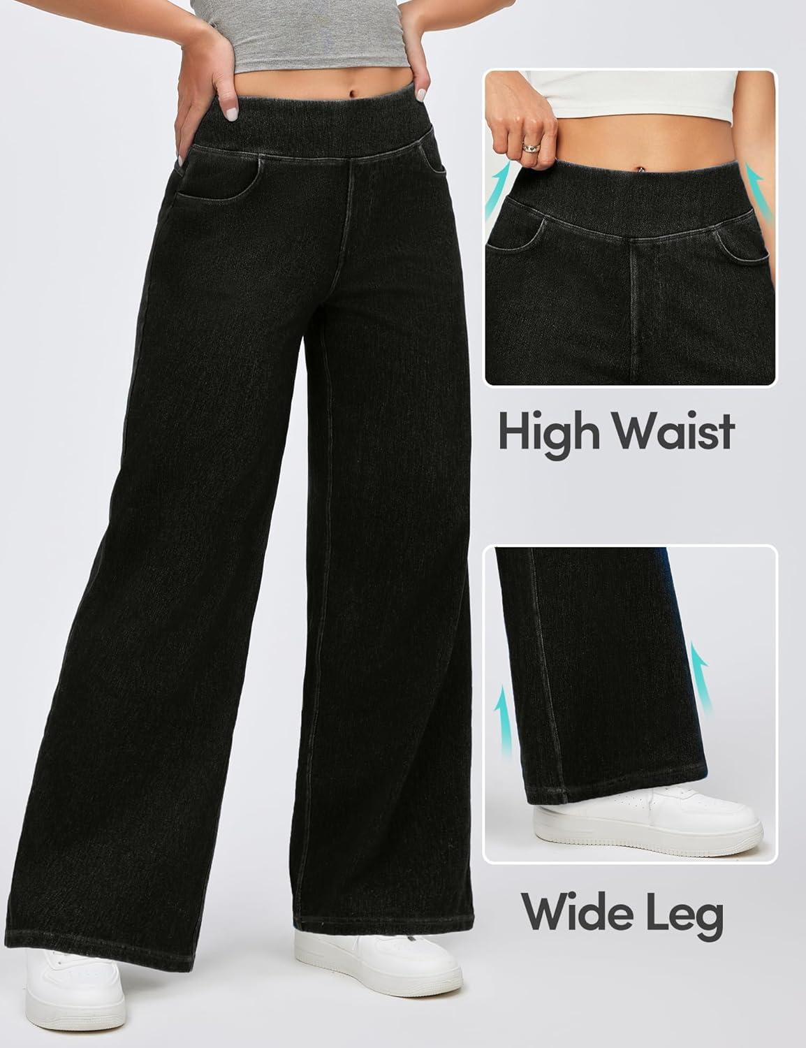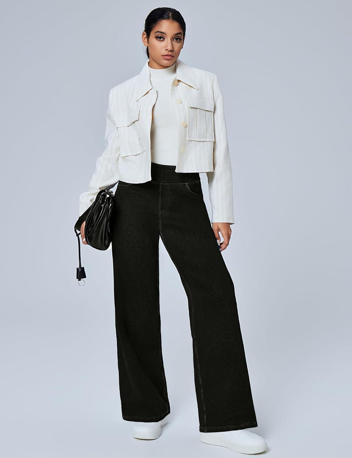 IUGA Wide Leg Jeans Woman High Waisted Pull On Baggy Jeans for Women Stretchy Trendy Womens Jean Straight Casual Denim Pants(Black)