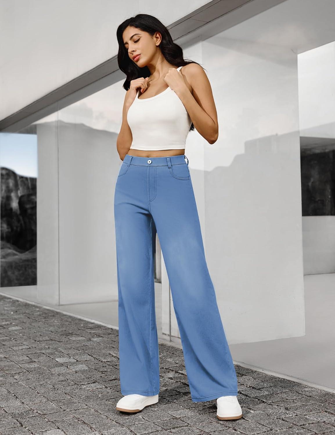 IUGA Wide Leg Jeans Woman Stretchy Pull On Baggy Jeans High Waisted Trendy Womens Jeans Straight Casual Denim Pants(Sky Blue 31″ Inseam)