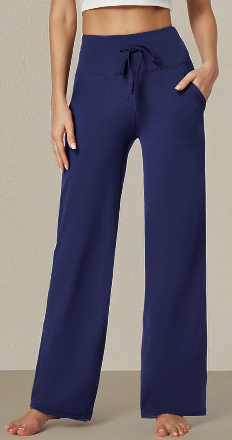 IUGA Wide Leg Yoga Pants for Women Sweatpants with Pockets Yoga Pants Flare Lounge Pants Loose High Waist Comfy Workout Dance(Dark Blue 31″inseam)