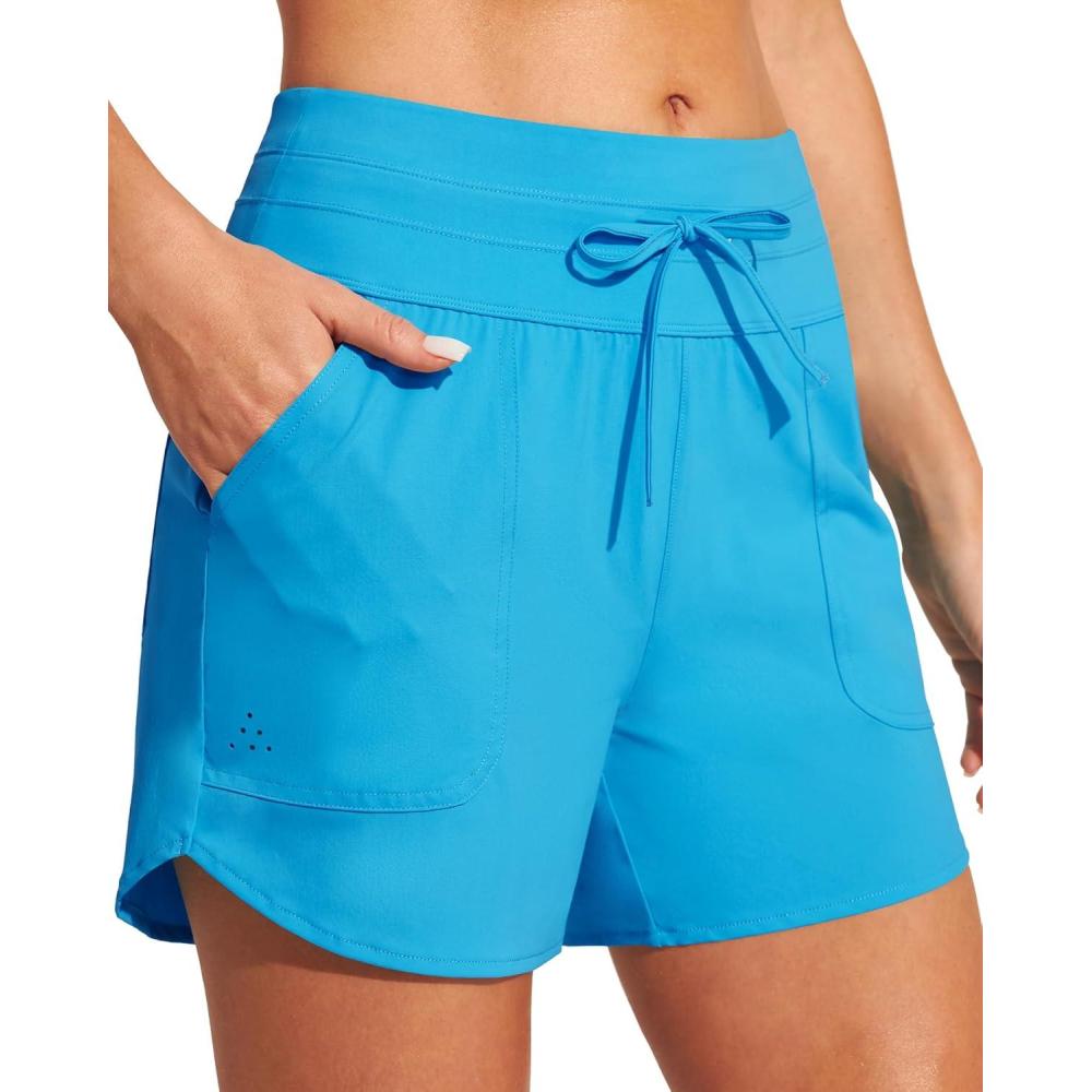 IUGA Womens 5″ Swim Board Shorts Stretchy High Waisted Beach Shorts for Women Quick Dry UPF 50+ Swimsuit Bottoms with Liner(Electric Blue)