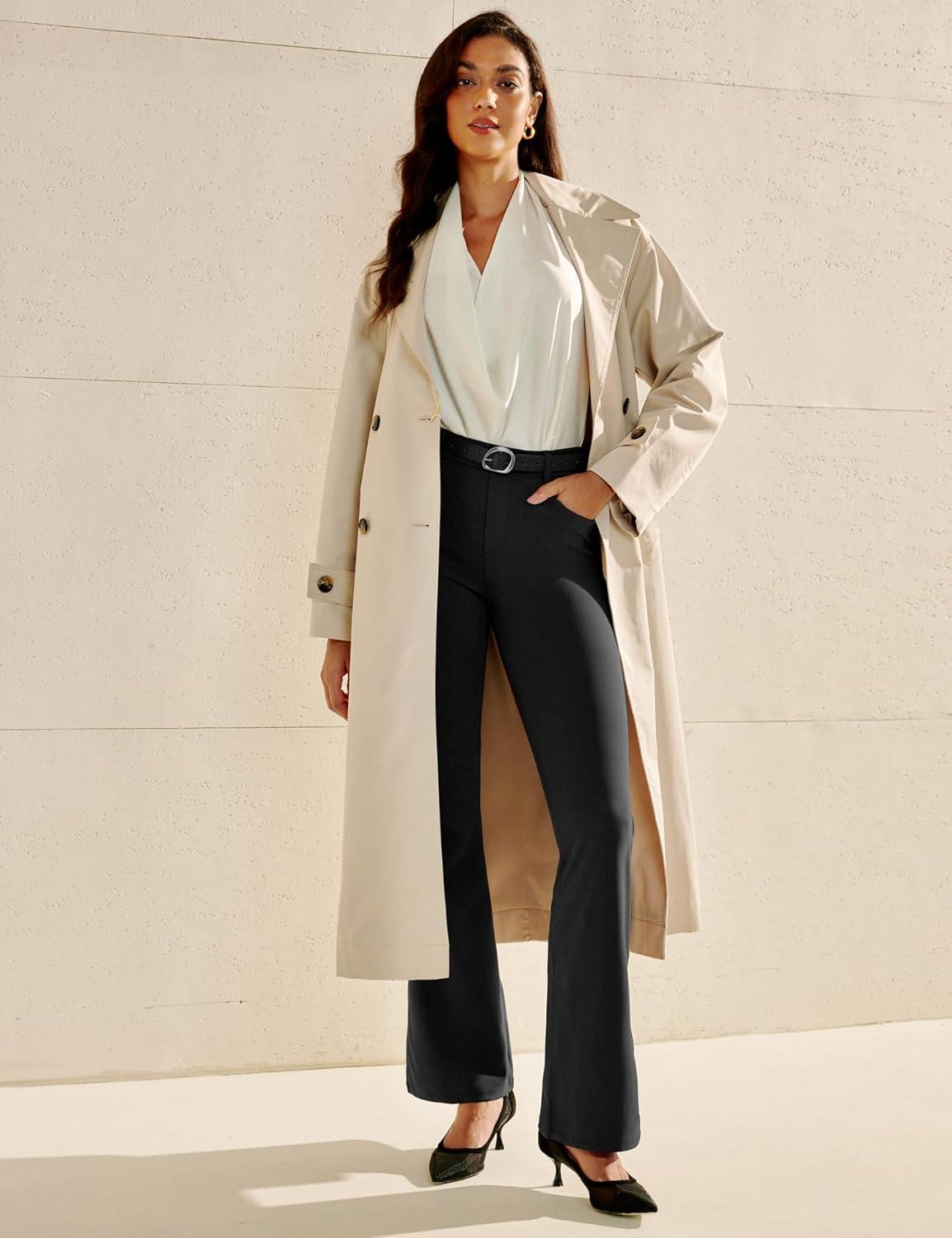 IUGA Womens Dress Pants Bootcut Business Casual Work Pants with Pockets Stretchy Slacks Pull On Trousers Office(Black)