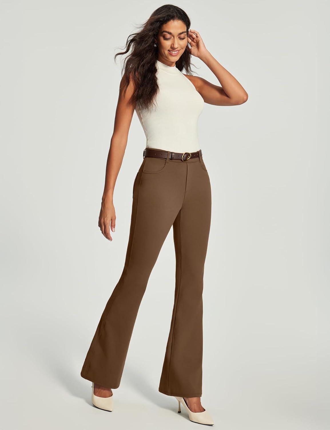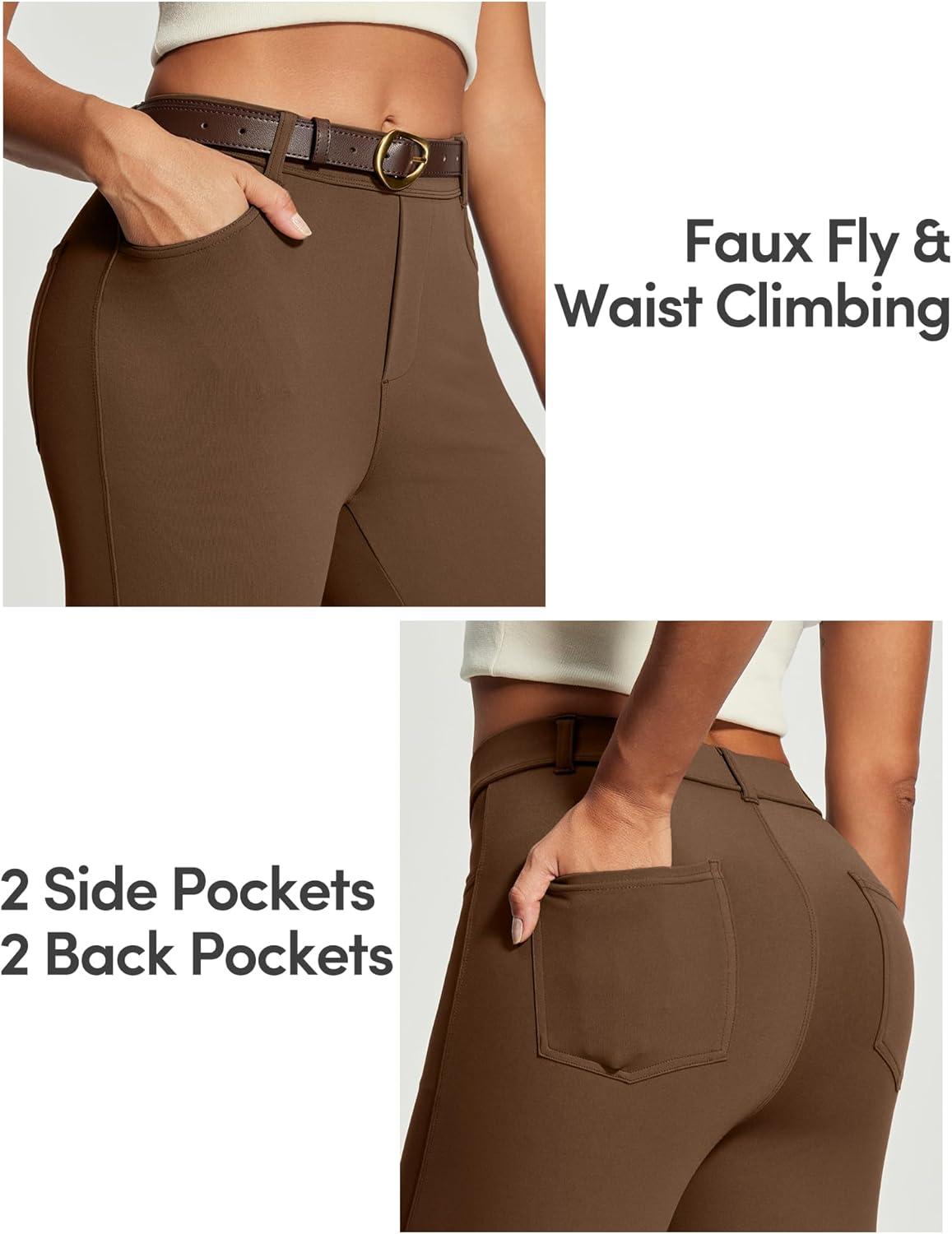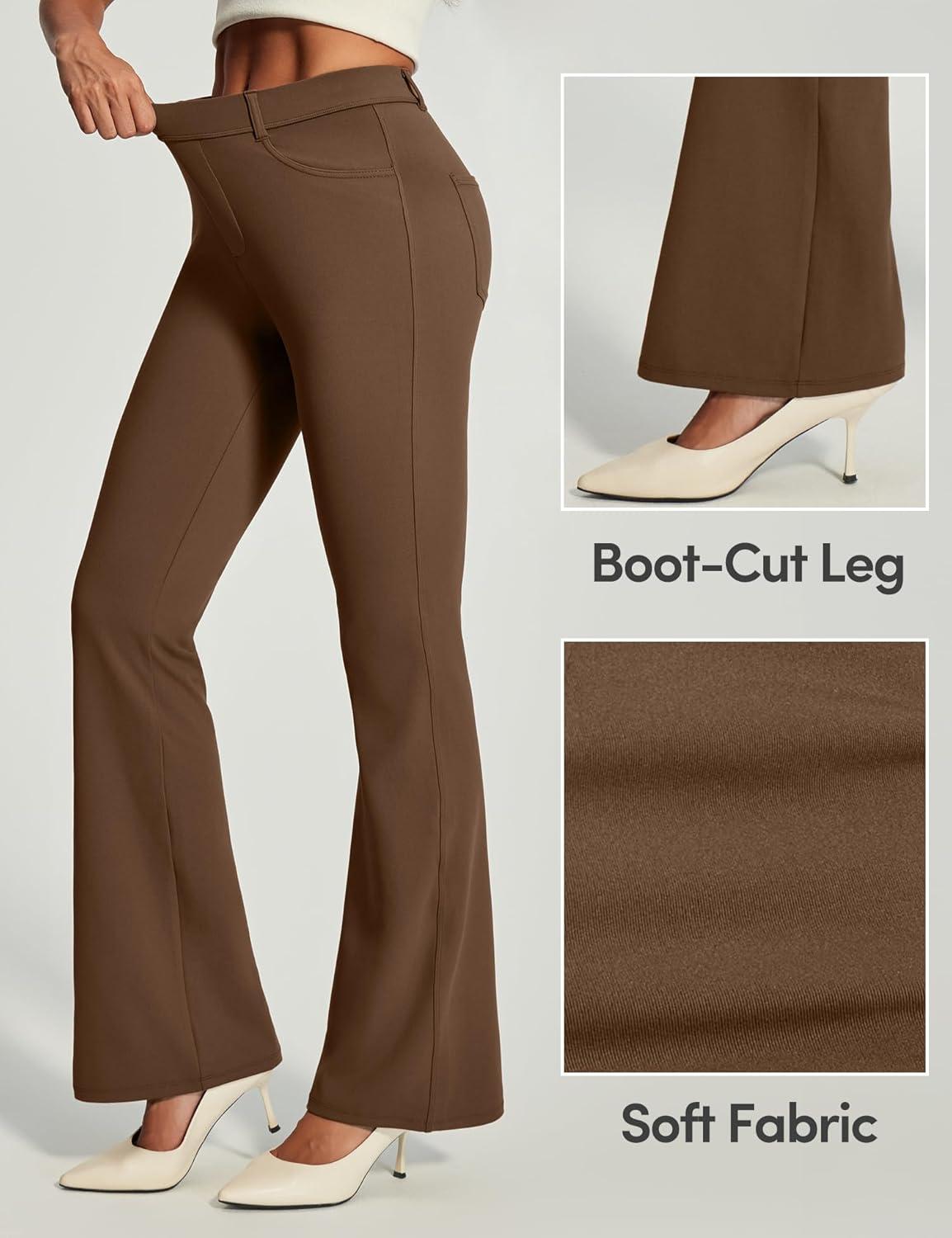 IUGA Womens Dress Pants Bootcut Business Casual Work Pants with Pockets Stretchy Slacks Pull On Trousers Office(Brown)