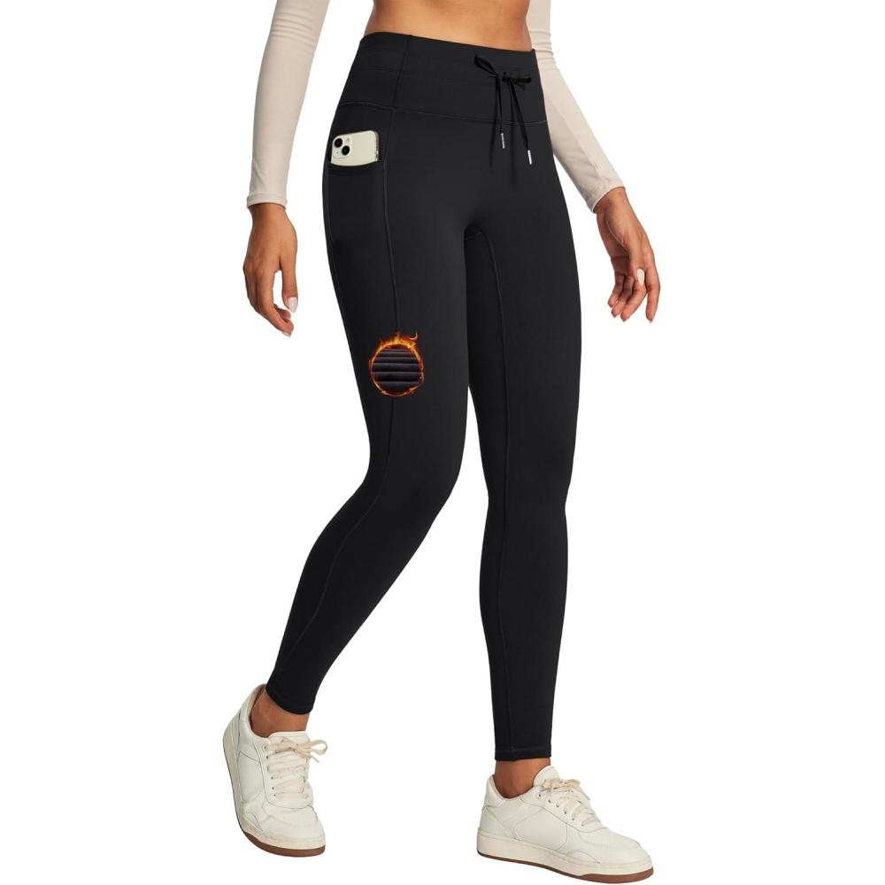 IUGA Women’s Fleece Lined Leggings Water Resistant High Waisted Thermal Leggings Winter Pants with Pockets Running Ski Hiking(Black)