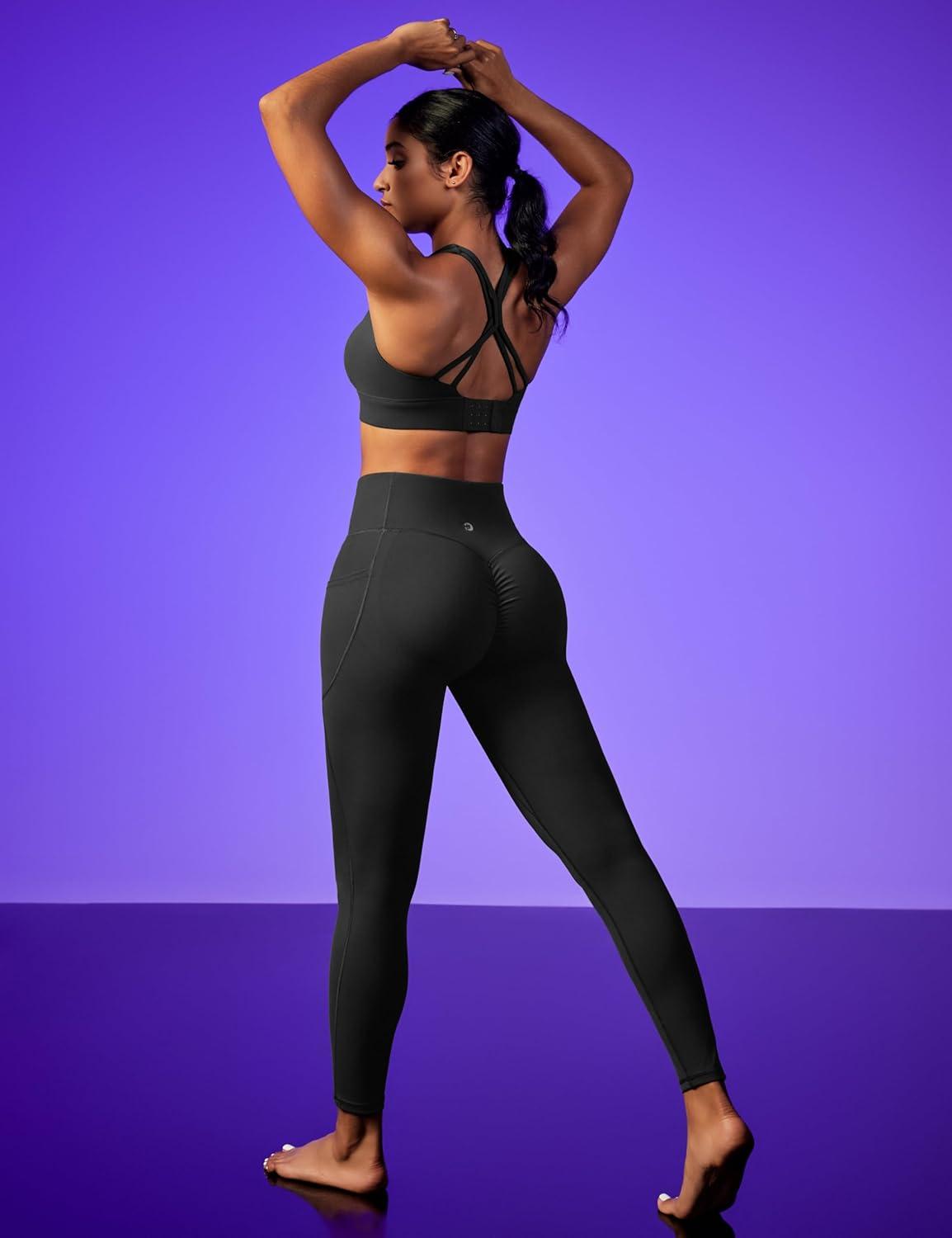 Scrunch Butt Lifting Leggings for Women Tummy Control No Front Seam Compression Workout Leggings with Pockets Yoga Pants(Black)
