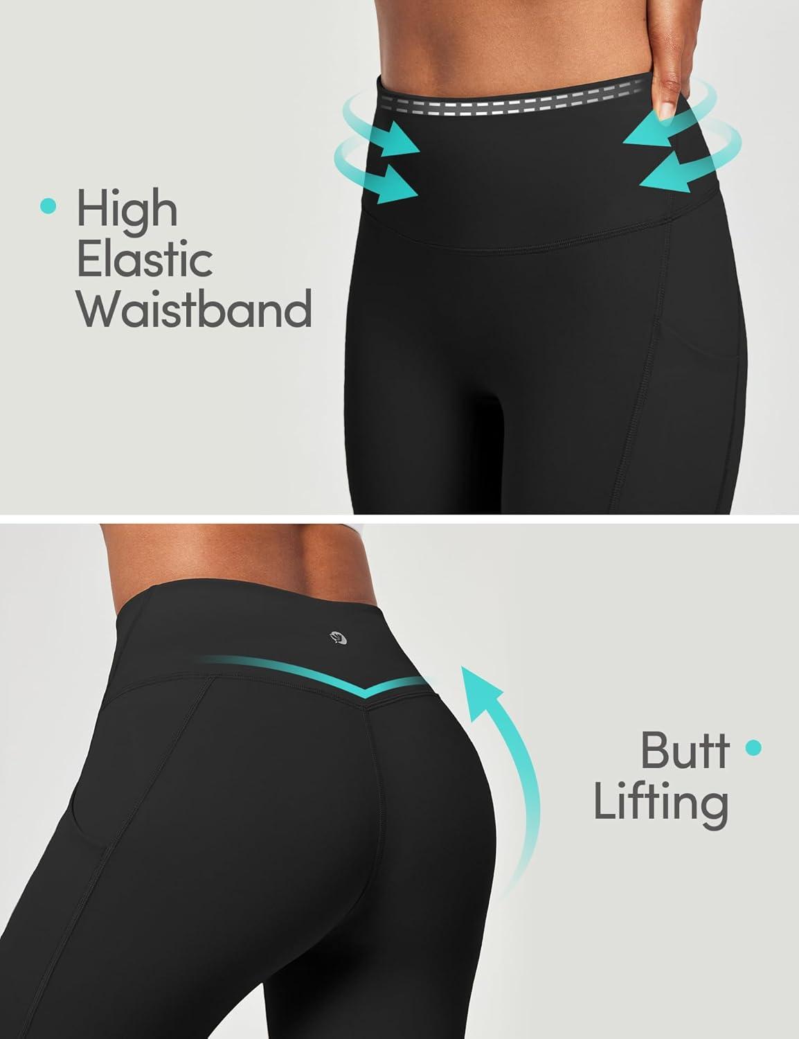 IUGA Bootcut Yoga Pants with Pockets for Women High Waisted Workout Pants Women Flare Yoga Pants Tummy Control(Black)