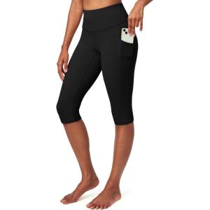 IUGA Capri Leggings for Women with Pockets Women’s High Waisted Knee Length Capris Compression Yoga Pants Workout Leggings(Black)
